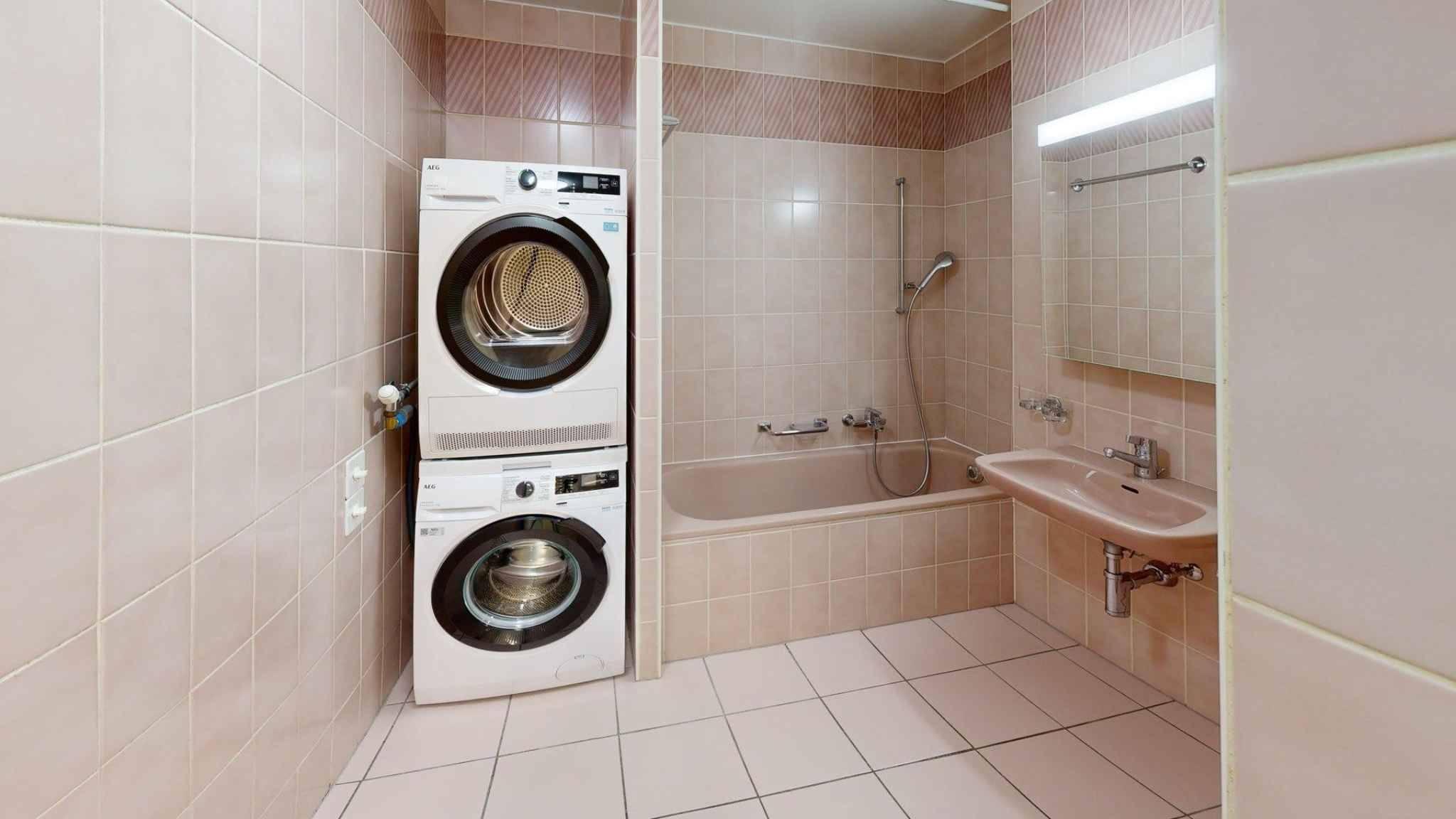 - Salle de bains avec colonne de lavage,