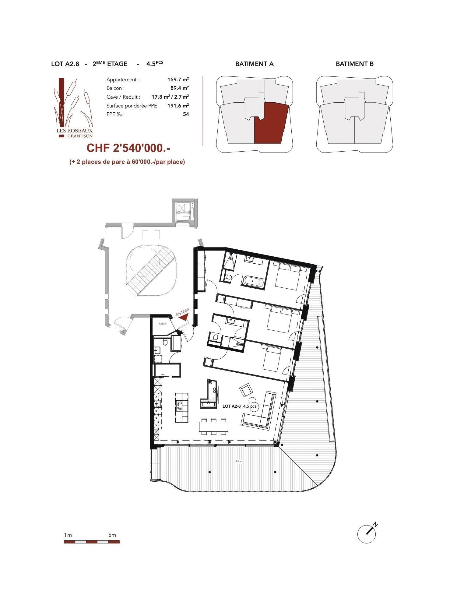 Une cave de 17m2, un balcon de 89m2 ainsi que 2 place de parcs (CHF 60'000.- l'unité) en sus complètent ce bien.