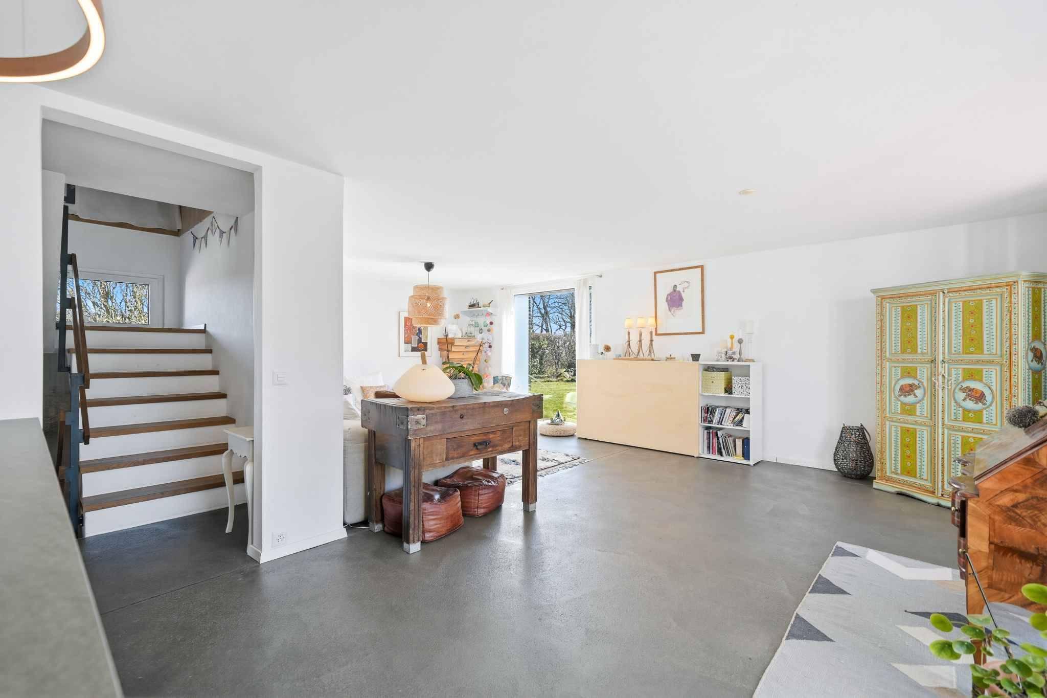 Cette maison vous séduira par ses volumes généreux (953m³), par son jardin, par sa belle vue, (lac, campagne et montagnes voisines) ses finitions de bon standing, telles que la cuisine avec son ilot central, ses sols en béton ciré, etc.....