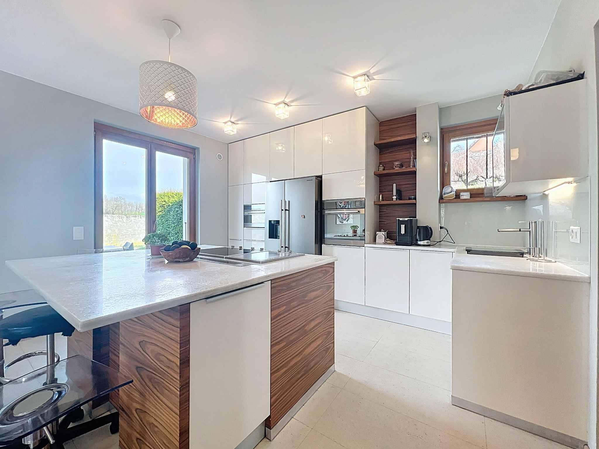 Cette maison vous séduira par ses volumes généreux (973m³), par son jardin sans vis-à-vis et avec de belles vues,(lac et campagne) ses finitions de bon standing, telle que la cuisine avec son ilot central, ses sols, que ce soit les parquets en chêne massifs ou son sol en pierre, les nombreuses armoires murales lui conférant un coté pratique agréable, les spots encastrés, etc...