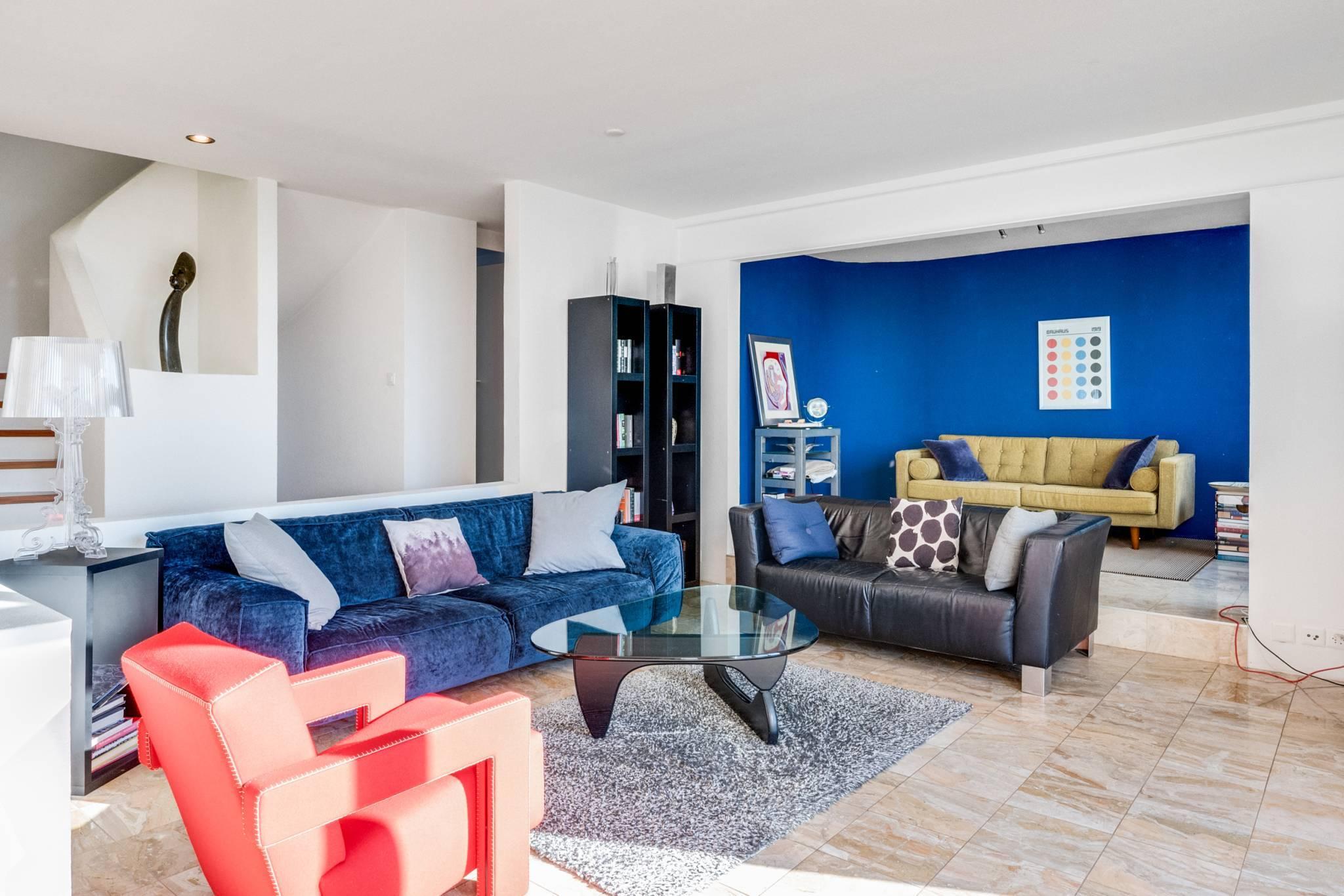 Celle-ci offre des pièces de belle dimension, extrêmement lumineuses. Elle est distribuée sur une surface de près de 300 m2 utiles. Elle offre des pièces à vivre confortables avec un spacieux double salon avec une magnifique cheminée centrale à double foyer, salon avec 2 terrasses en prolongement.