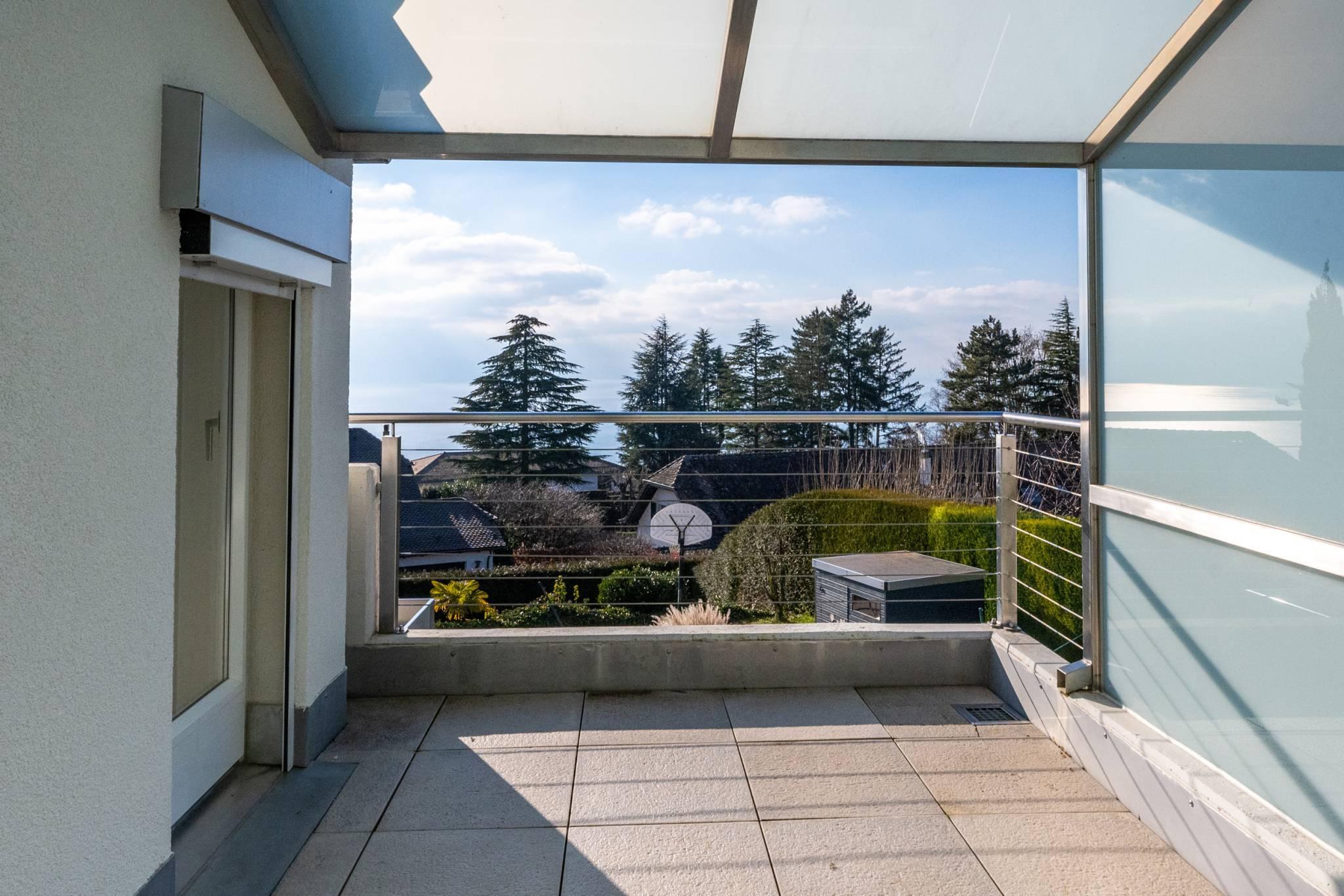 A l'étage, 5 chambres baignées de lumière et bénéficiant d'une magnifique vue sur le lac et les montagnes ainsi que 2 salles d'eau et une terrasse.Le sous-sol, entièrement aménagé et chauffé, est composé d'un salon, une salle d'eau ainsi qu'un grand bureau très lumineux (plusieurs baies vitrées).