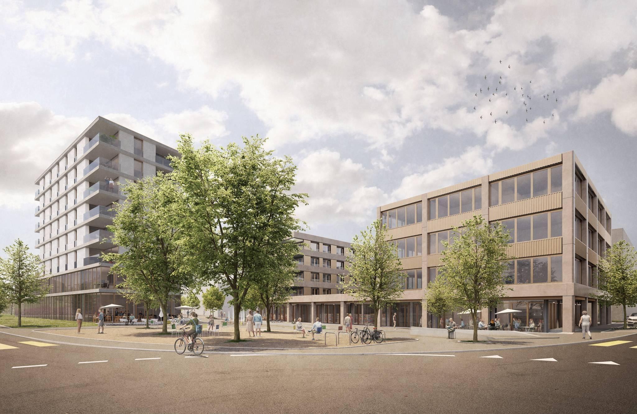 Construit selon des critères élevés en matière de durabilité et bénéficiant du label Minergie, cet immeuble moderne accueille des surfaces commerciales, des bureaux ainsi que des logements.