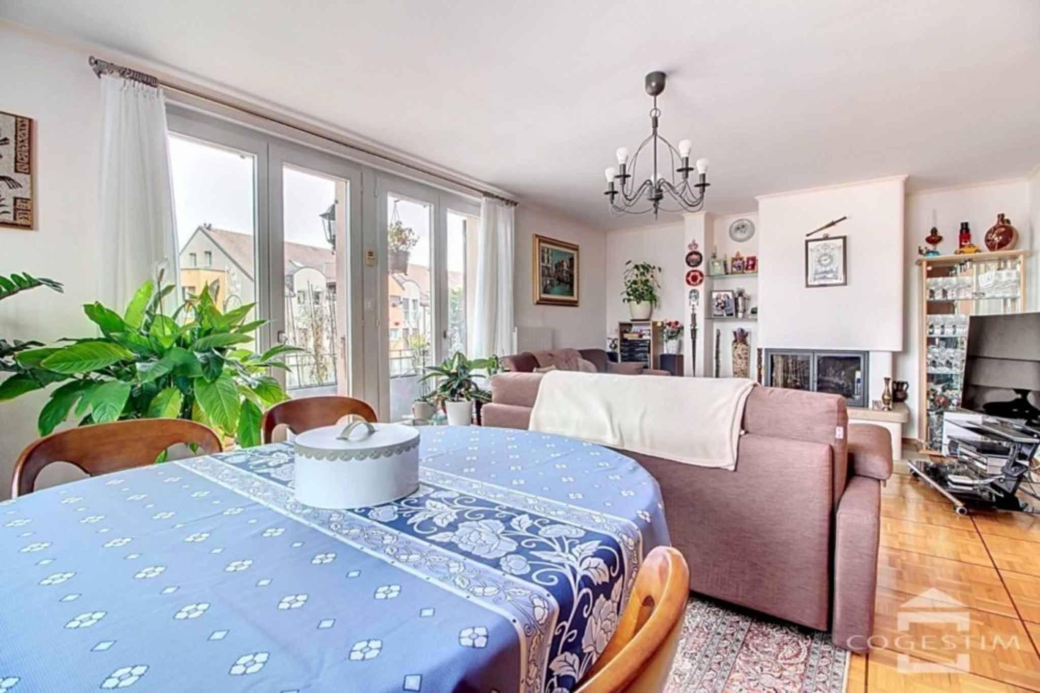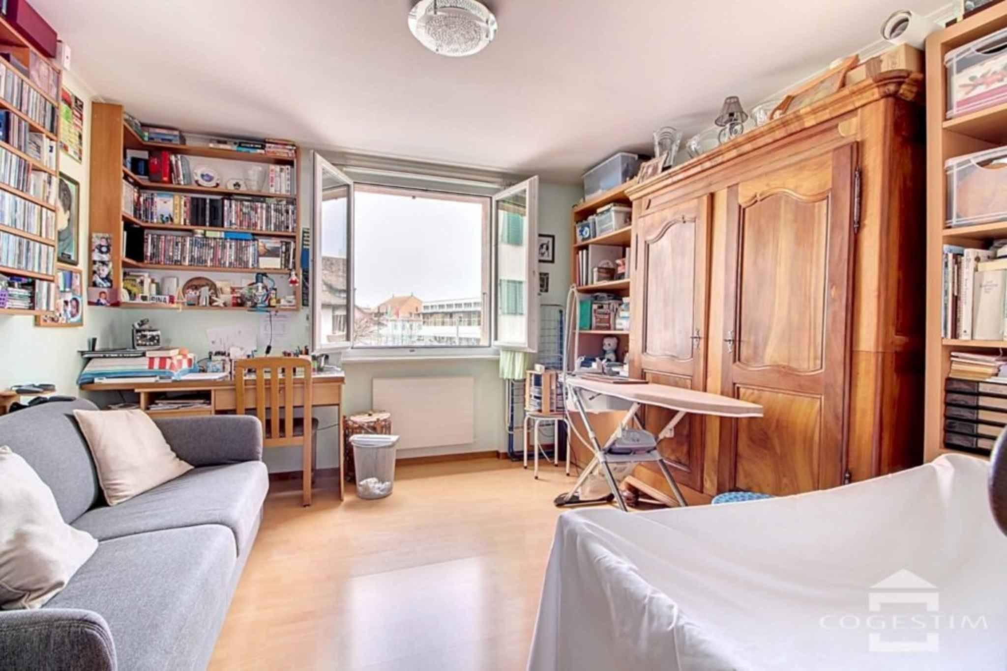 A proximité immédiate du centre du bourg, ce logement de 3.5 pièces est situé au 1er étage d’un petit immeuble en PPE. Il se compose d’un grand hall d’entrée, d’un séjour/salle à manger avec cheminée et balcon d’env. 8 m², d’une cuisine fermée entièrement agencée et équipée, 2 chambres avec armoires ainsi qu’une salle d’eau avec WC (descriptif détaillé en page suivante).
