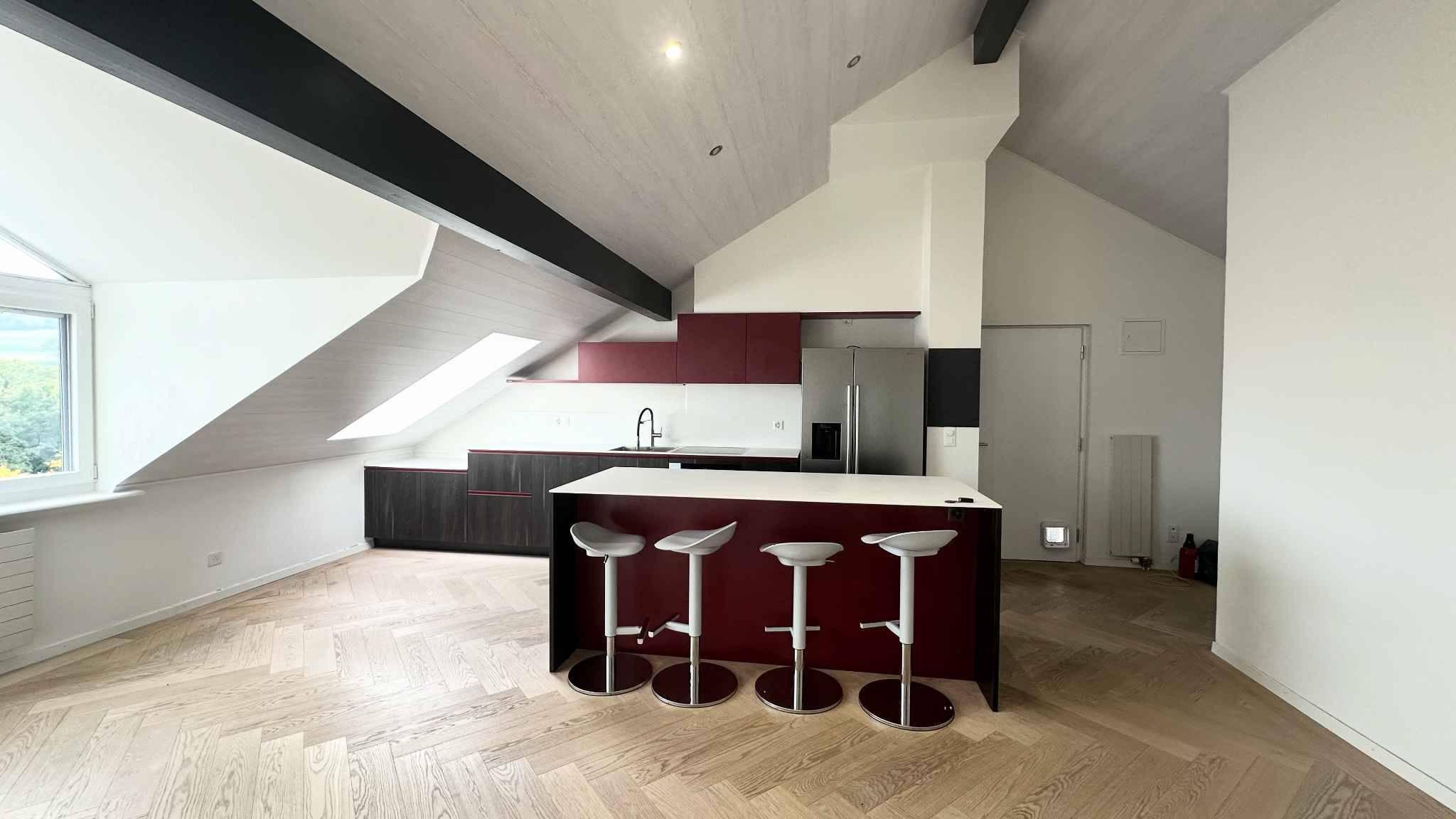Nous vous proposons ce bel appartement de 4.5 pièces situé sous les combles, offrant un cadre chaleureux et agréable à vivre.