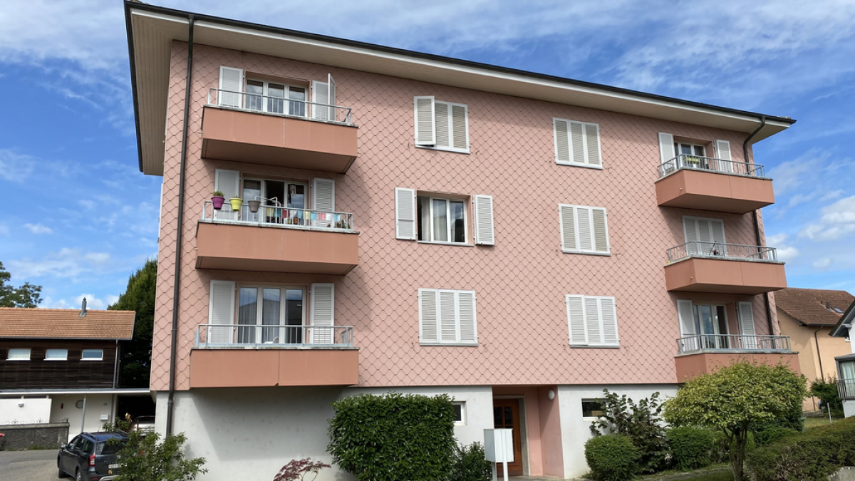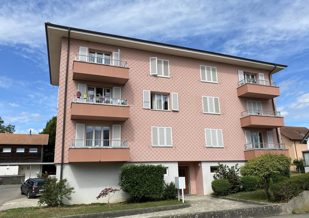 village proche d'Yverdon, joli 3.5 pièces comprenant, hall, séjour, cuisine agencée, 2 chambres, salle-de-bains/WC. Balcon