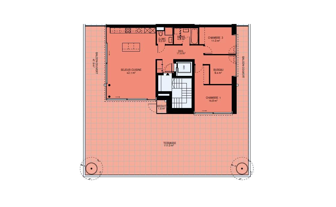 Un espace fitness sera mis à disposition des copropriétaires. Le sous-sol abritera l’ensemble des locaux technique, les caves, buanderies et un parking souterrain.