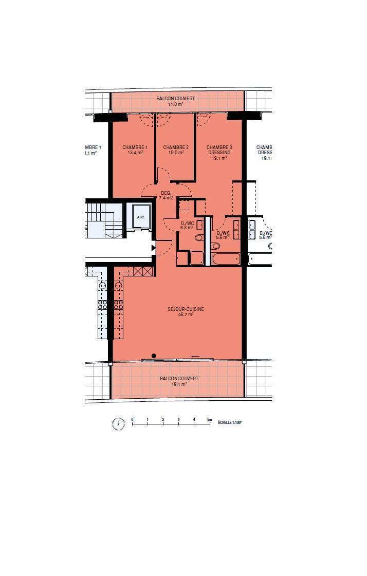 Cet appartement de 4.5 pièces se trouve au 1er étage du bâtiment D2.