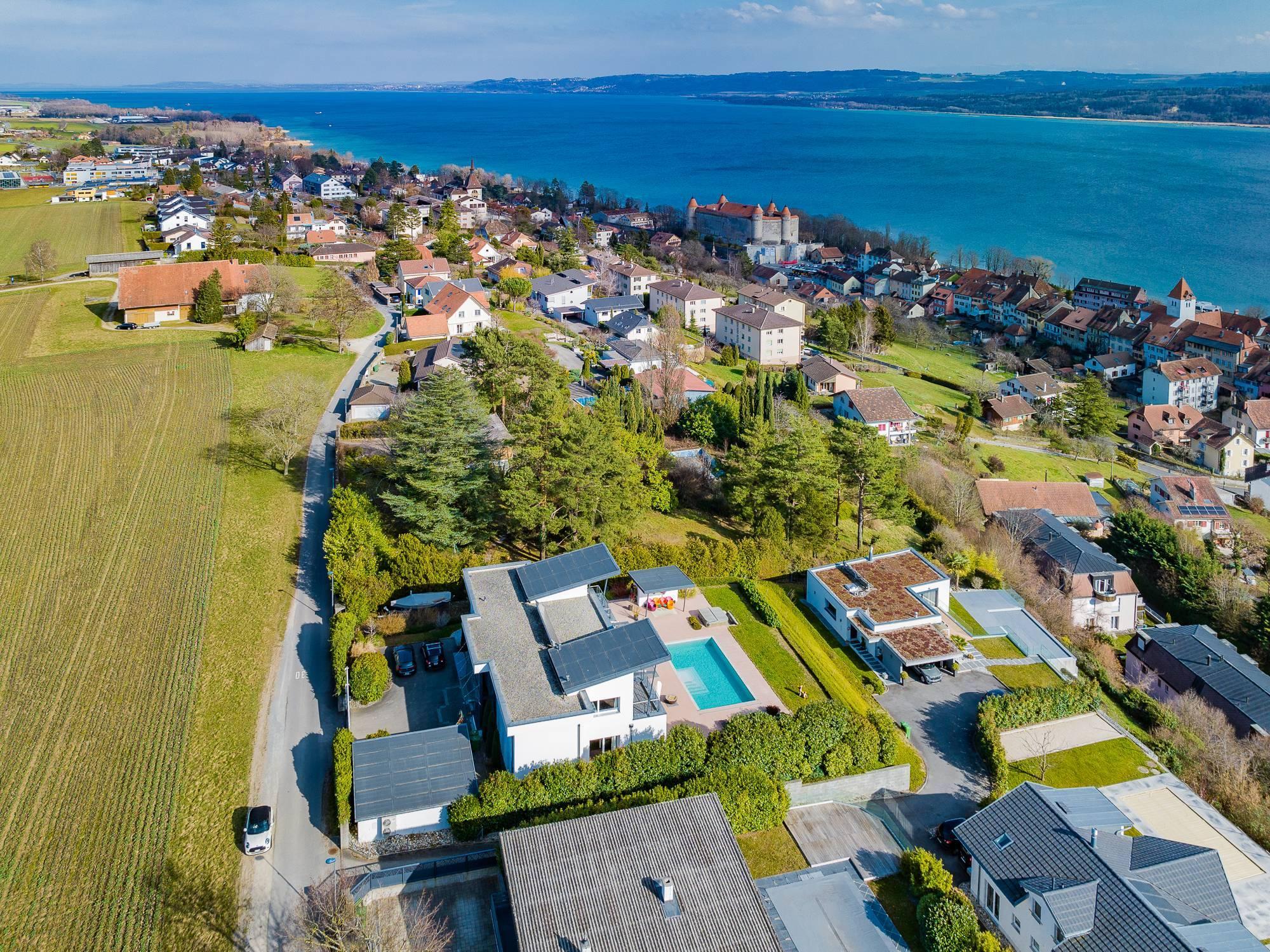 Située dans la commune de Grandson, à 20 minutes de Neuchâtel, cette demeure de 7.5 pièces offre une vue à couper le souffle sur le lac de Neuchâtel et les Alpes.