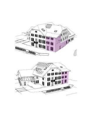 Ce projet prévoit un immeuble de 5 appartements, de 3.5 à 5.5 pièces dès 133 m2 jusqu'à 202 m2 de surface pondérée.