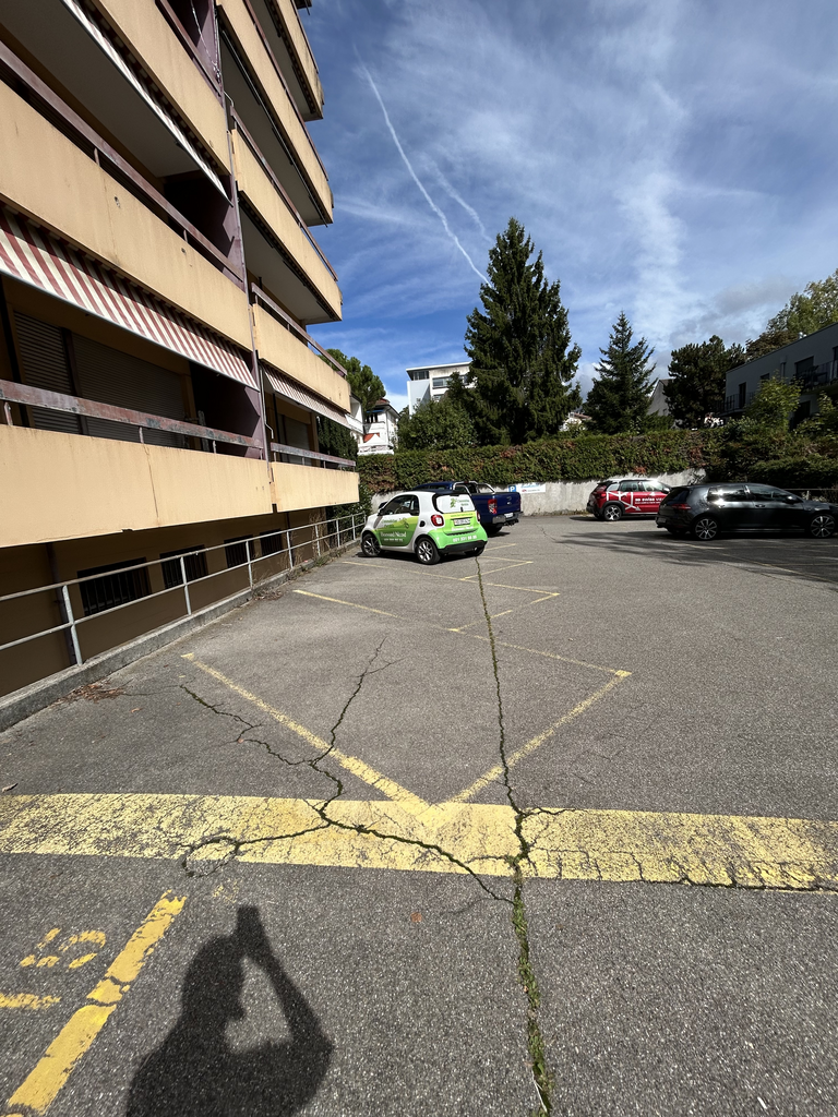 Places de parc extérieures disponibles au prix de CHF 100.00 + TVA 8.1% en sus pour les non-résidents.