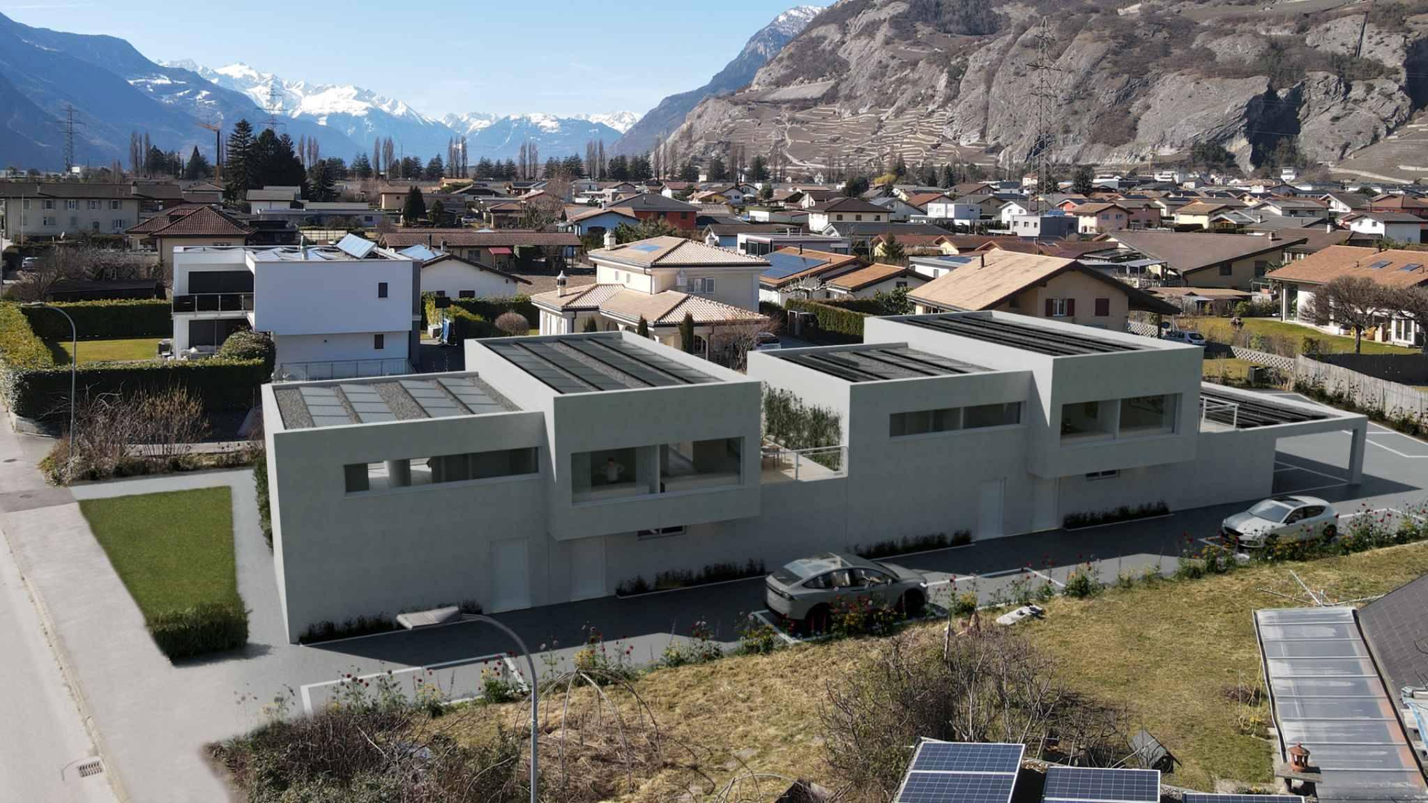 Promotion composée de 4 villas mitoyennes contemporaines, idéalement situées dans un environnement résidentiel calme, au sein de la commune prisée de Vétroz.