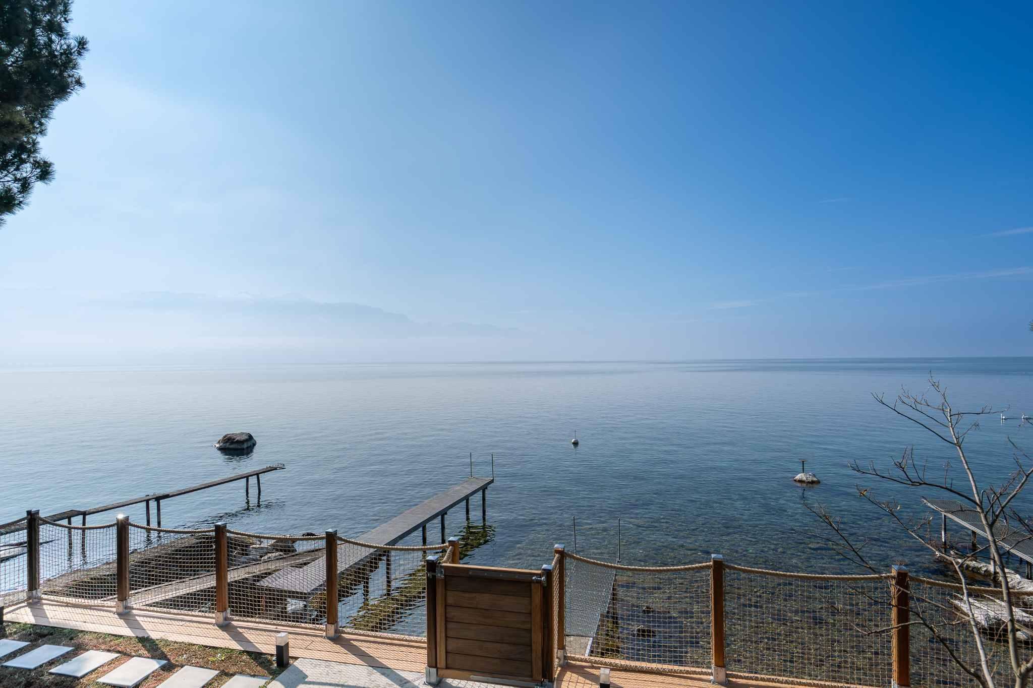 Located on the first line of the lake, this recently built property comprises two duplex apartments. It offers 290 m² of living space spread over 8.5 rooms, with direct access to the lake, a private pontoon, a mooring place and a boat shelter.