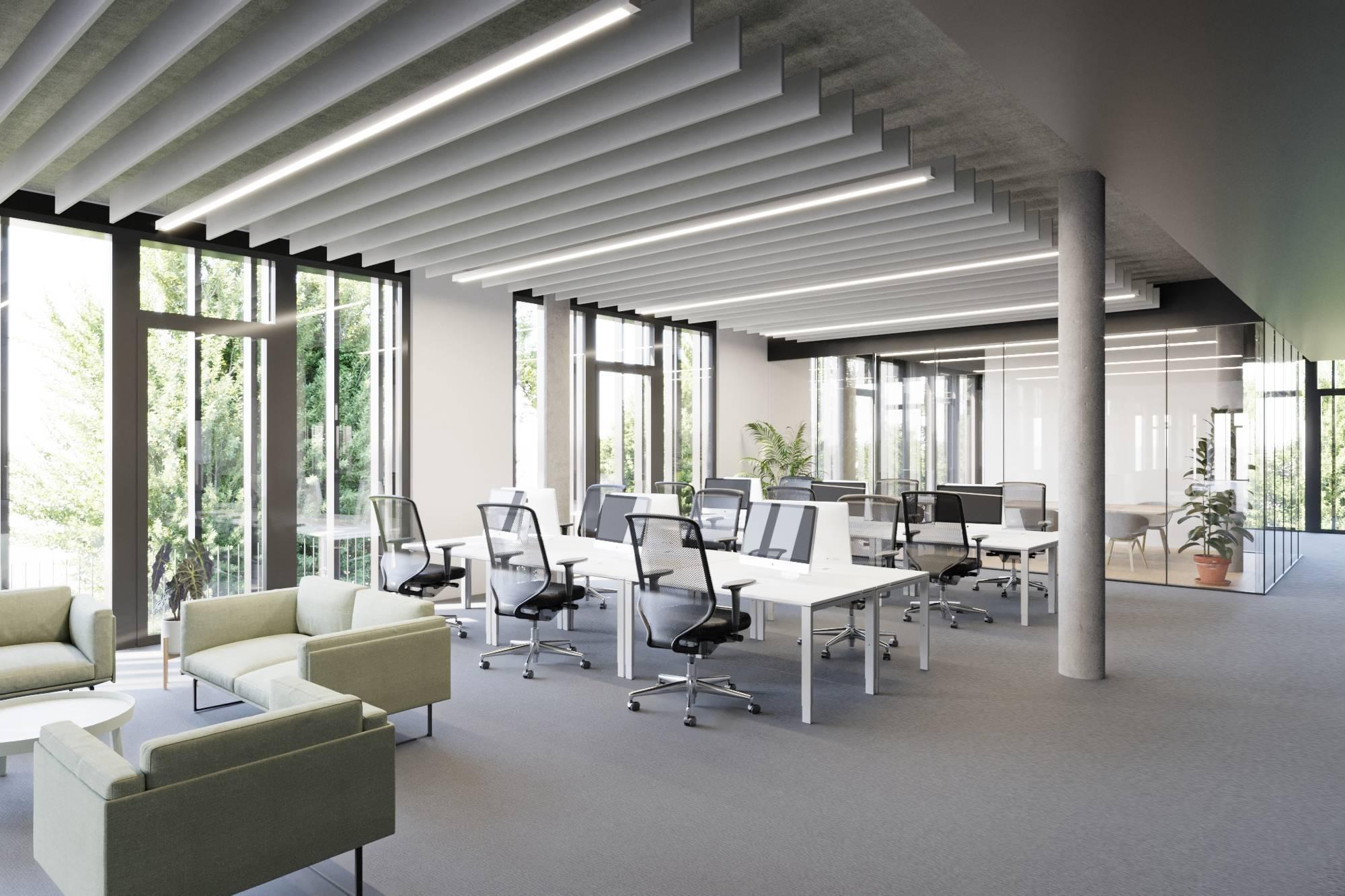 Le bâtiment totalise une surface de 4'700 m2 sur 4 niveaux, divisible dès 265 m2 avec un lot de 290 m2 bénéficiant d'une grande terrasse en attique..