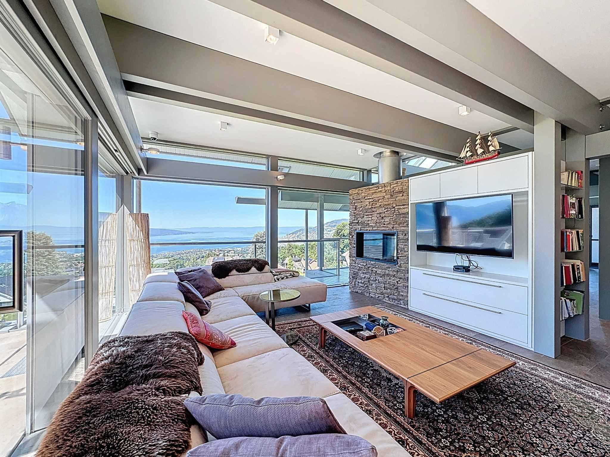 Dans un environnement résidentiel parmi les plus exclusifs de la Riviera vaudoise, cette remarquable villa d’architecte signée Huf Haus s’impose comme une propriété hors normes, où design contemporain, transparence architecturale et panorama grandiose se rencontrent avec une rare élégance.