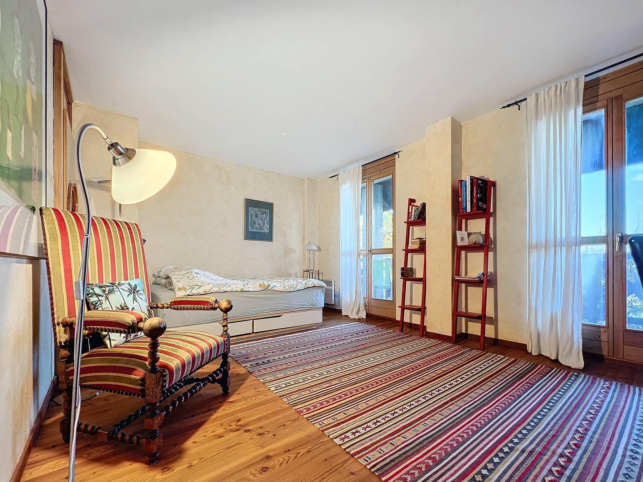 Le rez inférieur offre un appartement de 2,5 pièces avec cuisinette, salle de douche/WC et une chambre, idéal pour un revenu locatif ou pour accueillir famille et amis.