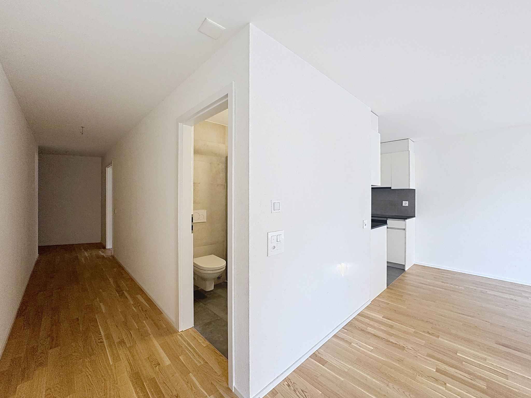 Dans un immeuble récent, construit en 2022 et répondant aux normes Minergie, très bel appartement de 2.5 pièces regroupant 56 m2 hab. + une terrasse de 14 m2 et petit jardin de 13 m2.