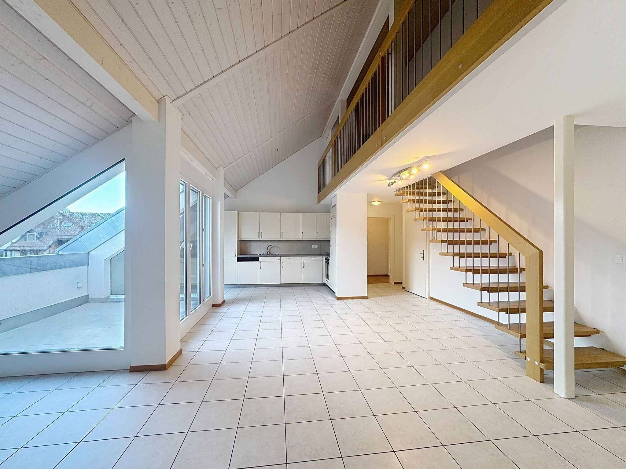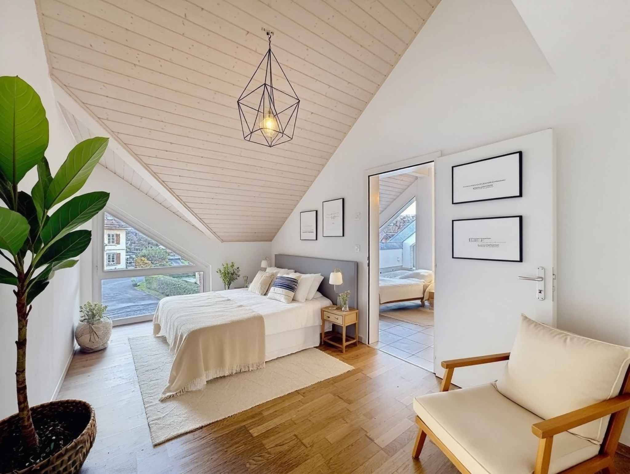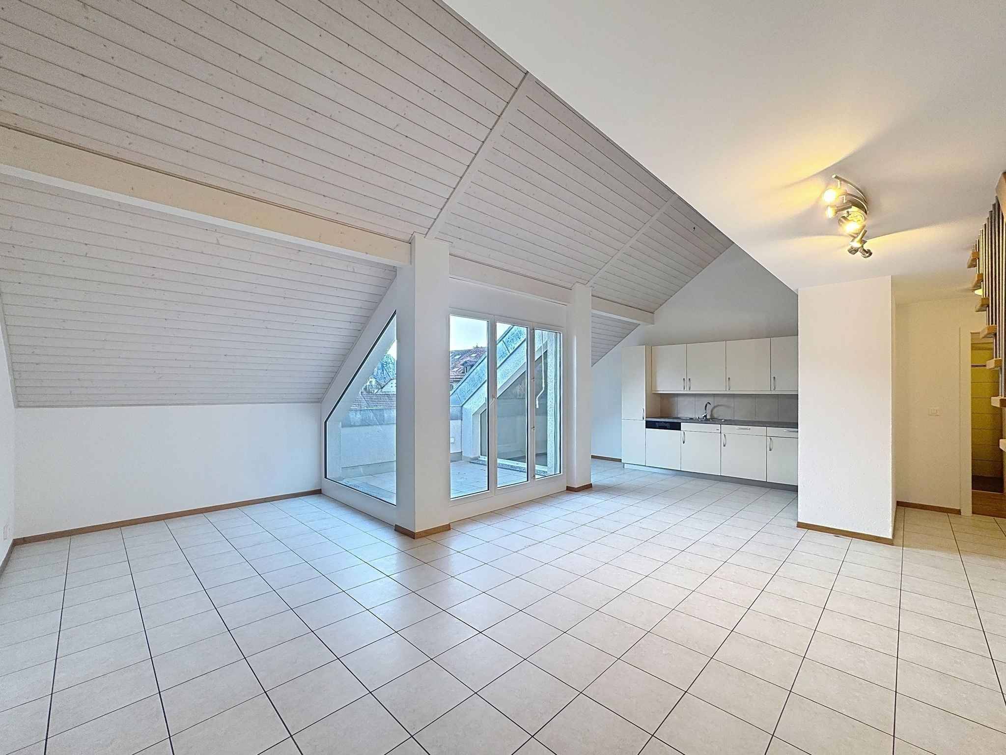 A 5 min. à peine de Villeneuve, dans un quartier calme et résidentiel, à proximité directe du centre du village de Rennaz et de l' Hôpital de la Riviera ainsi que de toutes les commodités et de l'autoroute, dans un petit immeuble de 3 étages construit en 2010 très bien entretenu et bénéficiant d'une excellente enveloppe énergétique, Superbe Appartement de 3.5 pièces, regroupant 94 m2 + une grande mezzanine de 15 m2 et un balcon dans les toits.