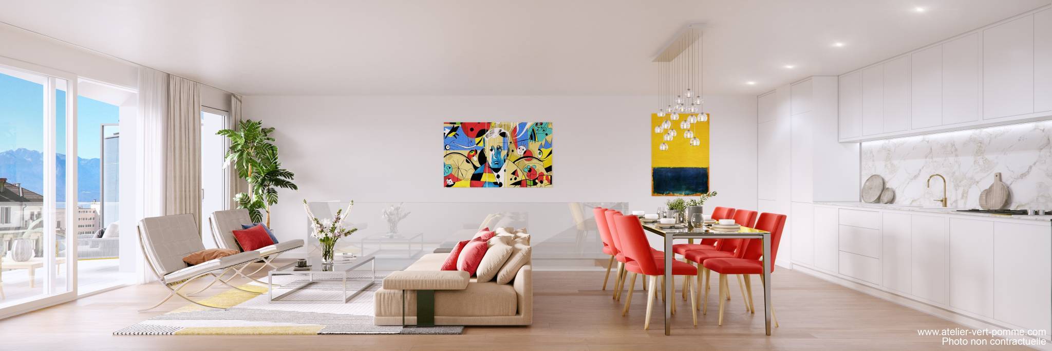 A Montreux/Clarens, ultra-centré, à 2 mn à pied de la gare de Clarens de tous les commerces, de l'arrêt du bus permettant de rejoindre la gare principale et le centre de Montreux, du bord du lac et de toutes les écoles, nouveau projet proposant 3 immeubles et regroupant 40 appartements en PPE allant de 1.5 pièce (36 m2 hab.) à 5.5 pièces (130 m2 hab.) + balcon et/ou terrasse.
