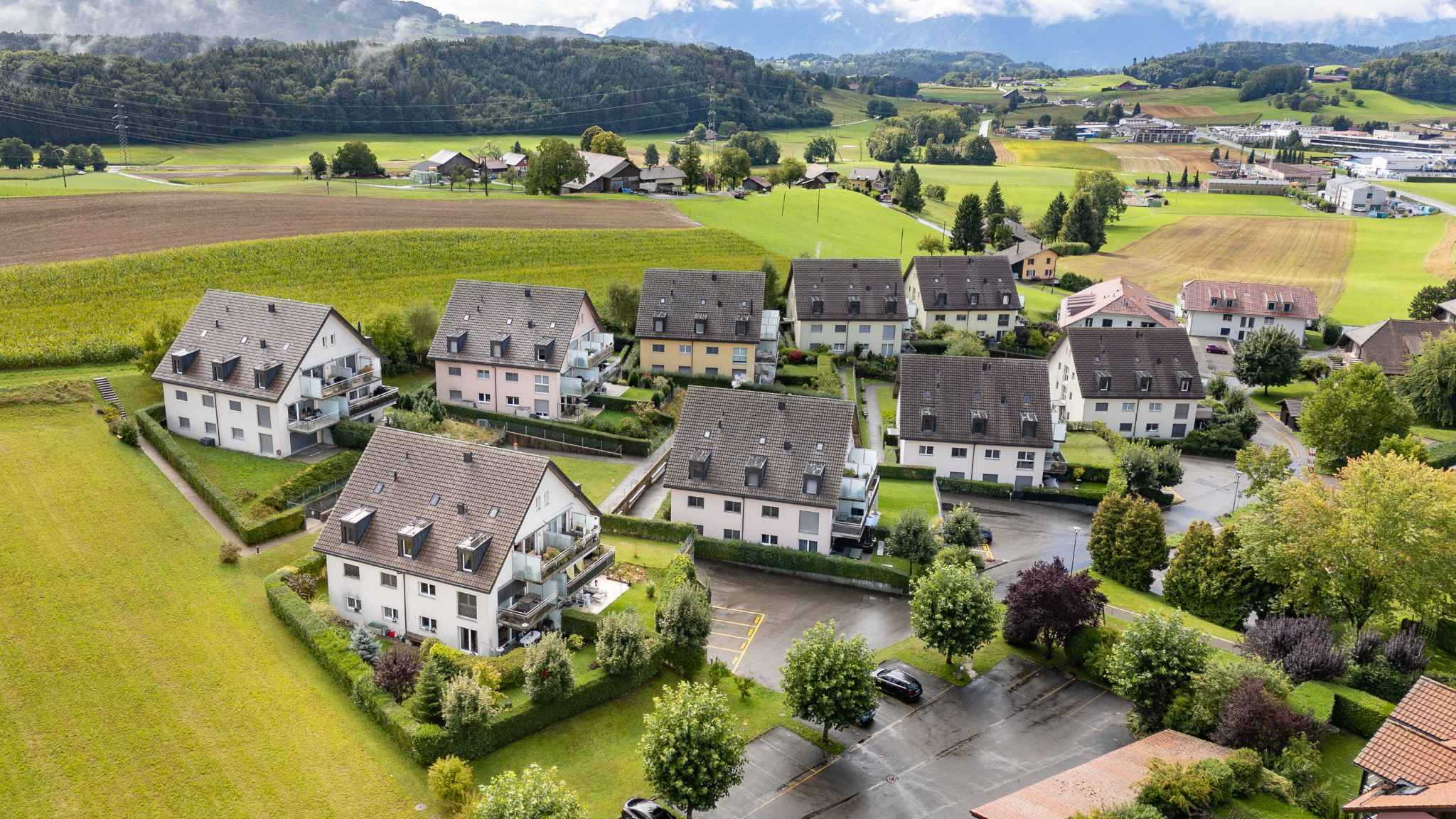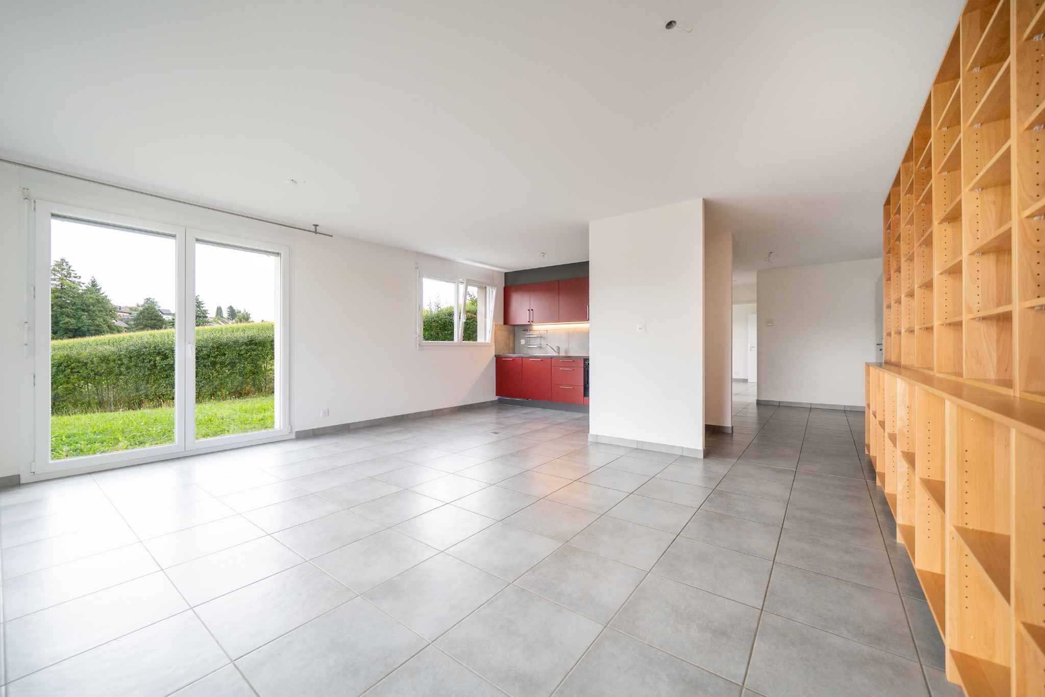 L'immeuble résolument moderne a été construit en 2011 et se trouve dans un quartier résidentiel, calme et verdoyant, à seulement 5 minutes à pied d'un arrêt de bus et à 15 minutes en voiture de Lausanne.