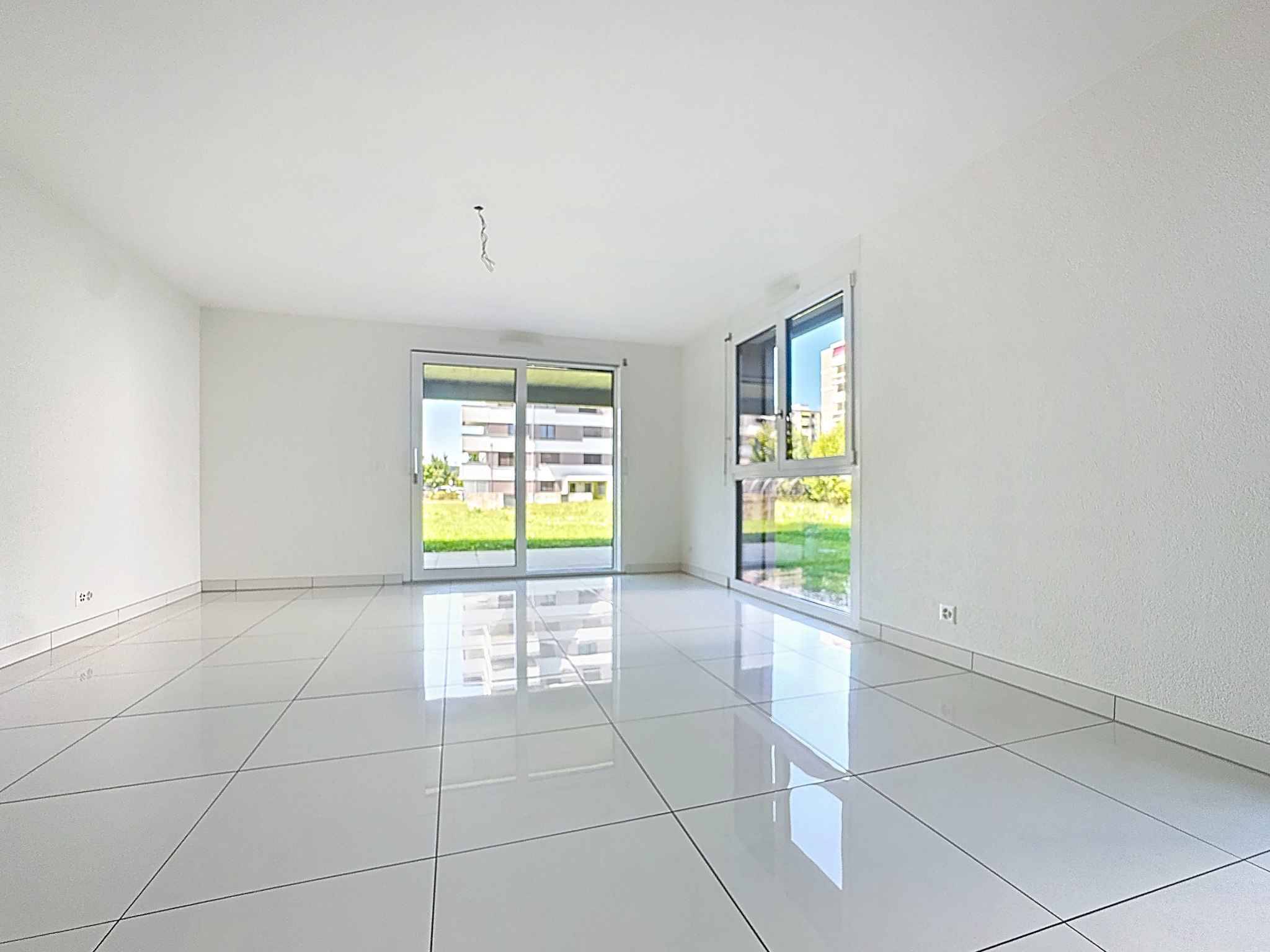 Situé dans la commune de Payerne, cet appartement de 4.5 pièces se trouve au rez-de-chaussée d'un immeuble construit en 2017.