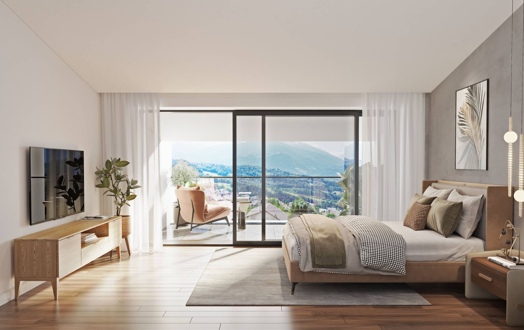 Tous les lots proposent une vue sur la vallée du Rhône et le val d’Hérens et la majestueuse Dent-Blanche.