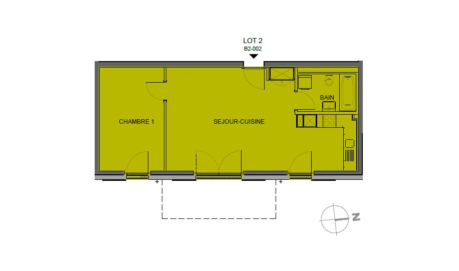 Cet appartement de 2.5 pièces se situe au rez-de-chaussée du bâtiment B.