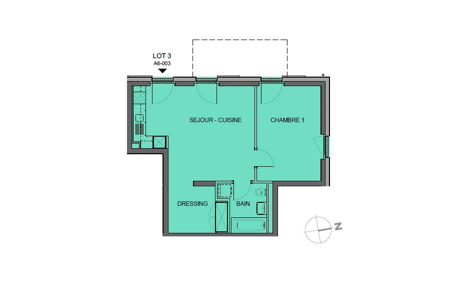 Cet appartement de 2.5 pièces se situe au rez-de-chaussée du bâtiment A avec entrée indépendante.