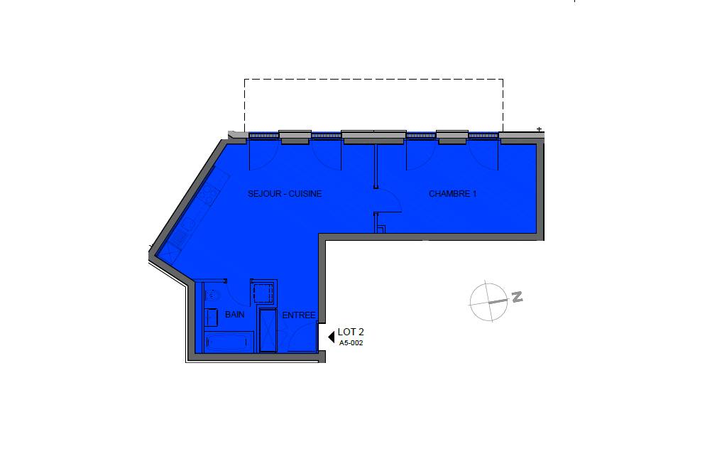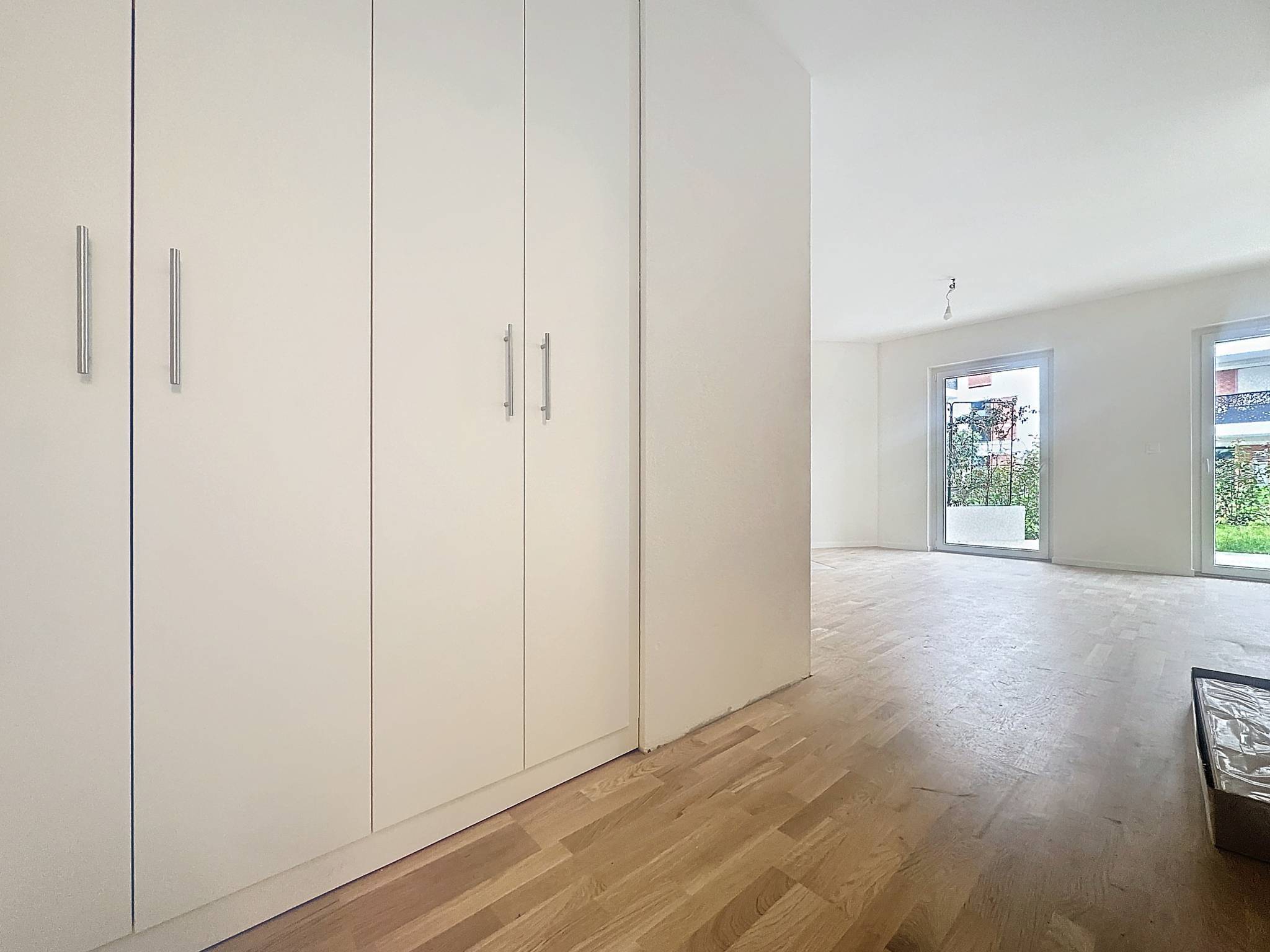 Il se compose d'une entrée avec armoires murales, d'une cuisine ouverte sur le lumineux séjour avec accès direct à une terrasse de 18.80 m2 et au jardin privatif. Une grande chambre à coucher et une salle de bains/WC avec possibilité d'installer une colonne de lavage.