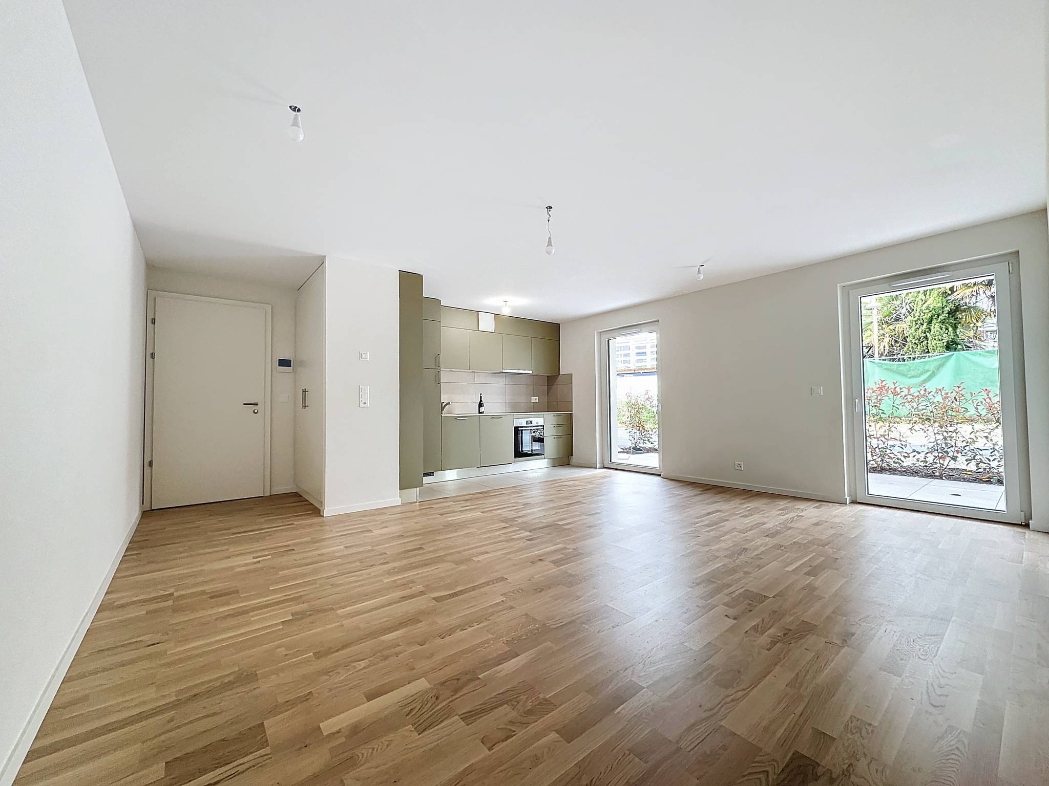 Cet appartement de 2.5 pièces avec terrasse se situe au rez-de-chaussée du bâtiment B.