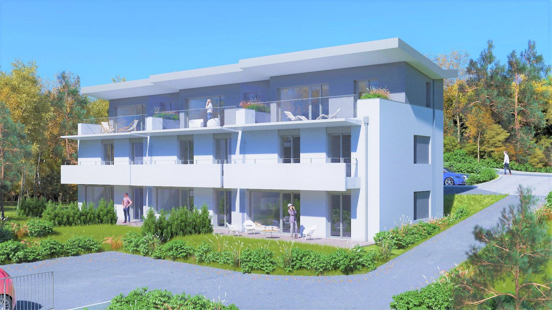 Au rez-inférieur 3 appartements de 2.5 pièces d’une surface de 57m2 et grande terrasse de 18m2 dès CHF 560'000.-