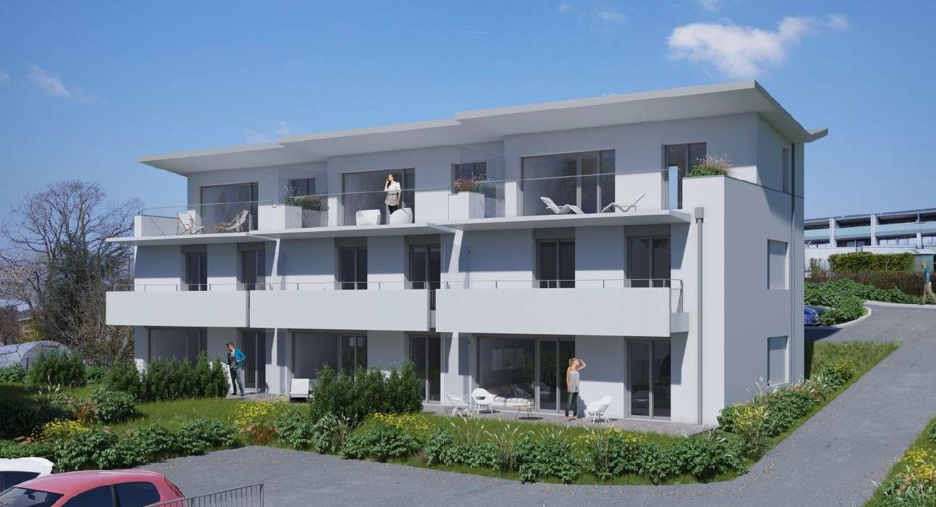 Au rez-inférieur 3 appartements de 2.5 pièces d’une surface de 57m2 et grande terrasse de 18m2 dès CHF 560'000.-