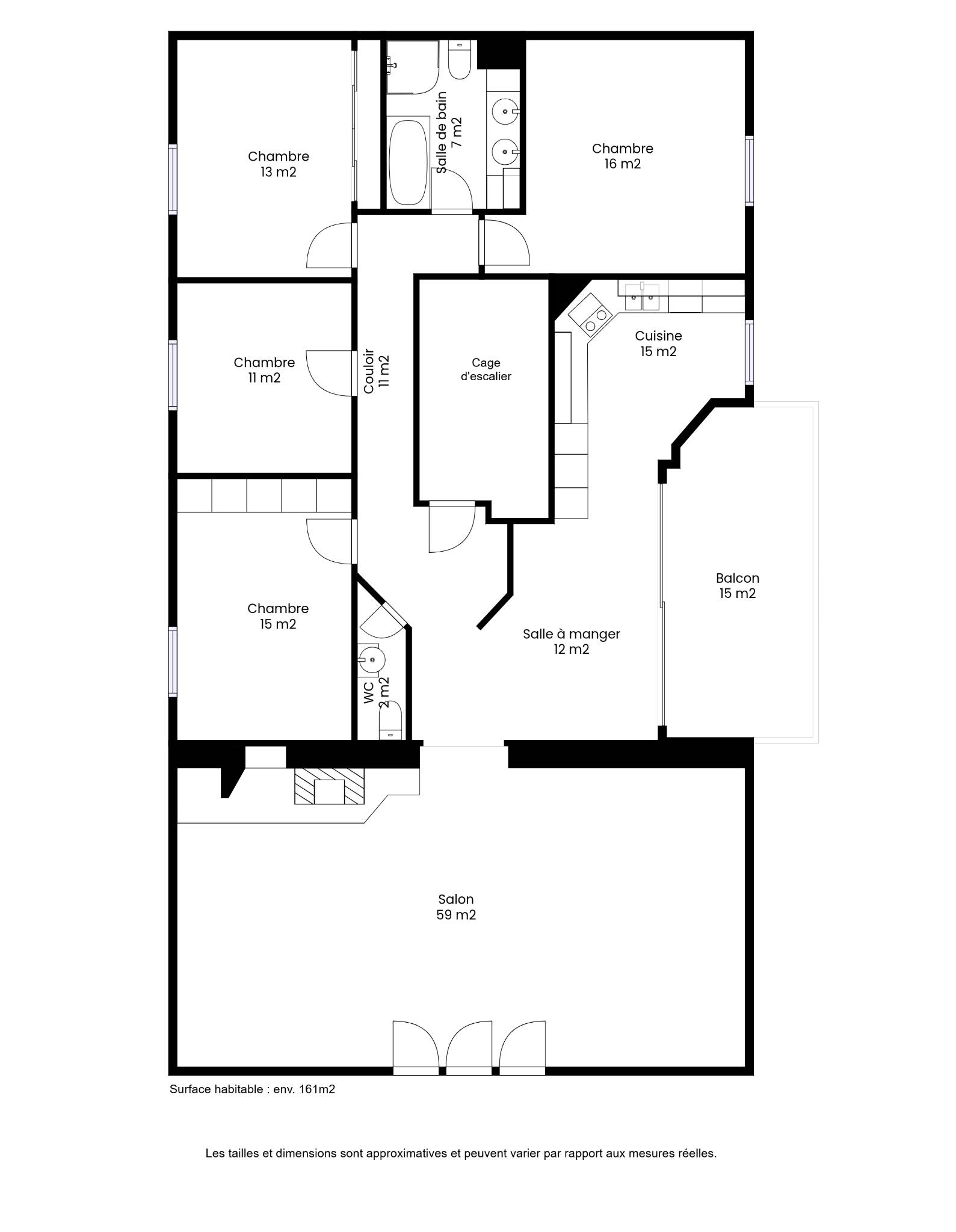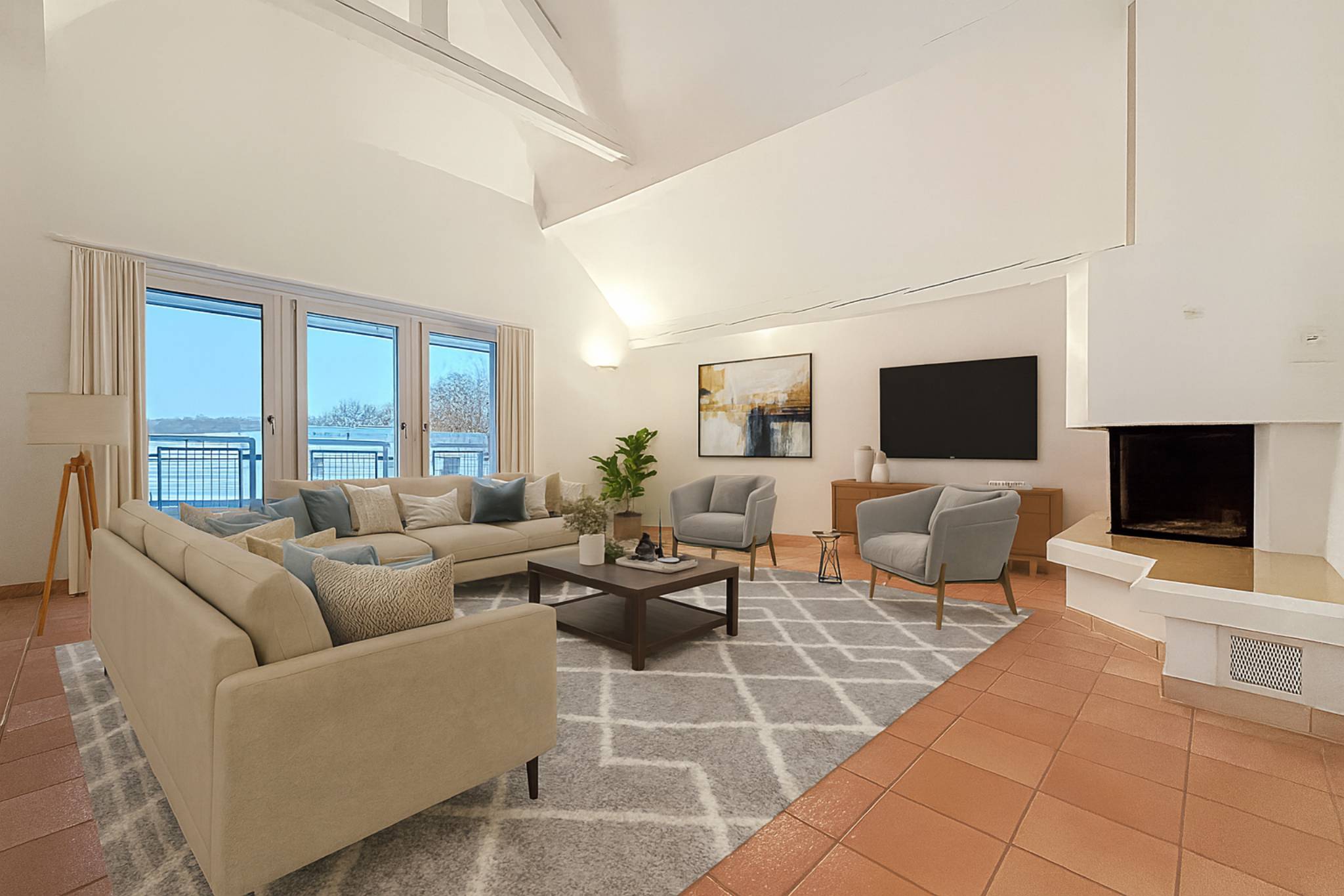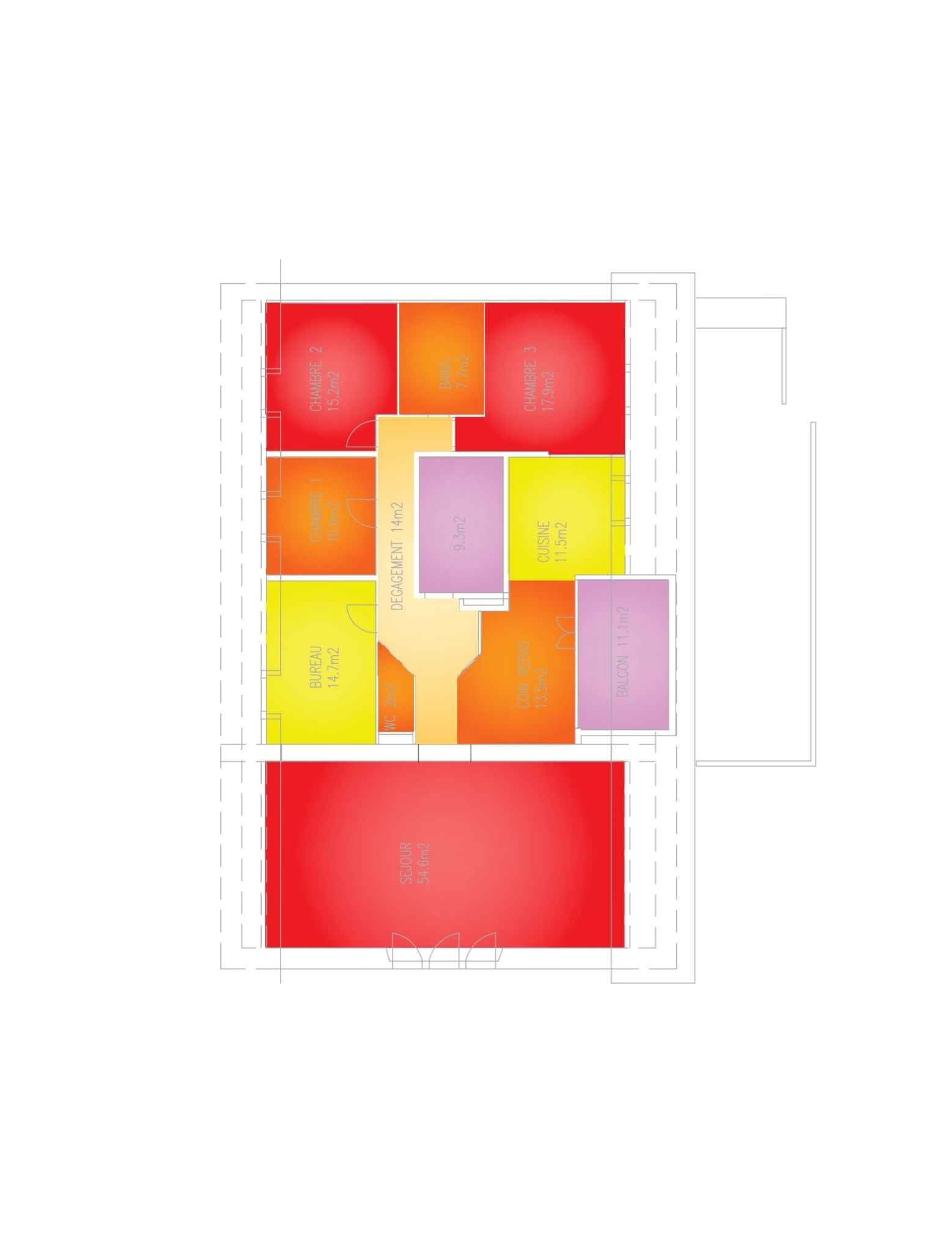 Un hall d’entrée mène à l'espace cuisine / salle à manger avec un grand balcon de 11m2, idéal pour profiter du panorama. Le vaste séjour avec cheminée vous séduira par ses belles hauteurs sous plafond. Un WC visiteur complète cette partie.