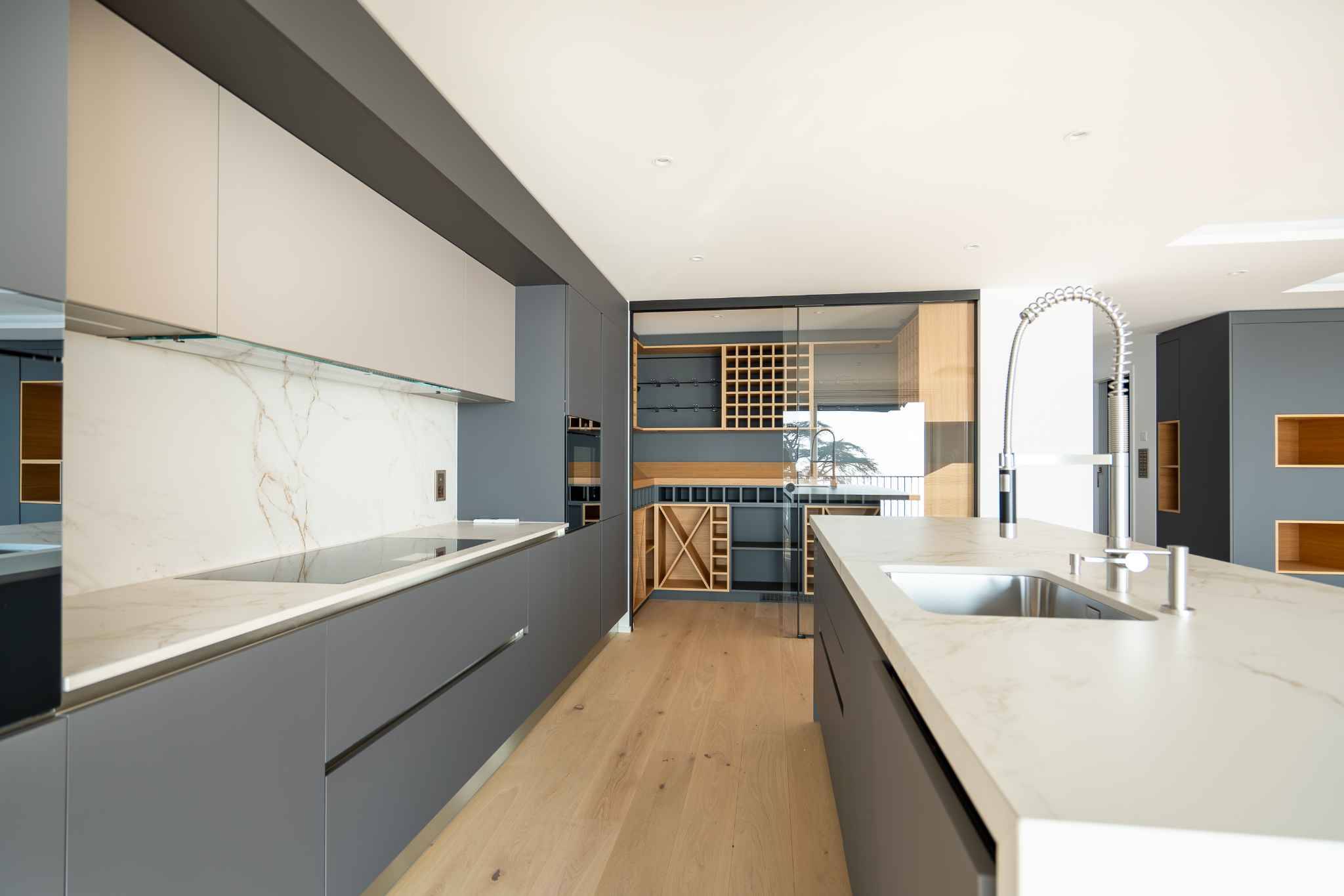 - Cuisine totalement agencée ouverte sur le séjour avec cave à vin intégrée