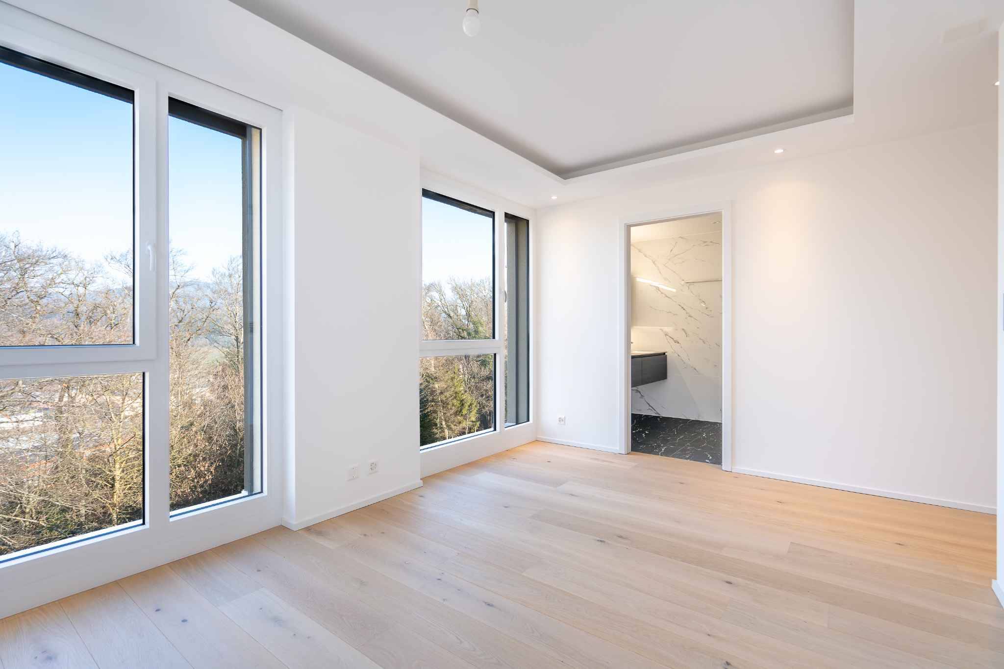 - Master Bedroom de 46 m2 avec salle de bain et dressing inclus orienté S/O et accès au balcon avec splendide vue sur le lac