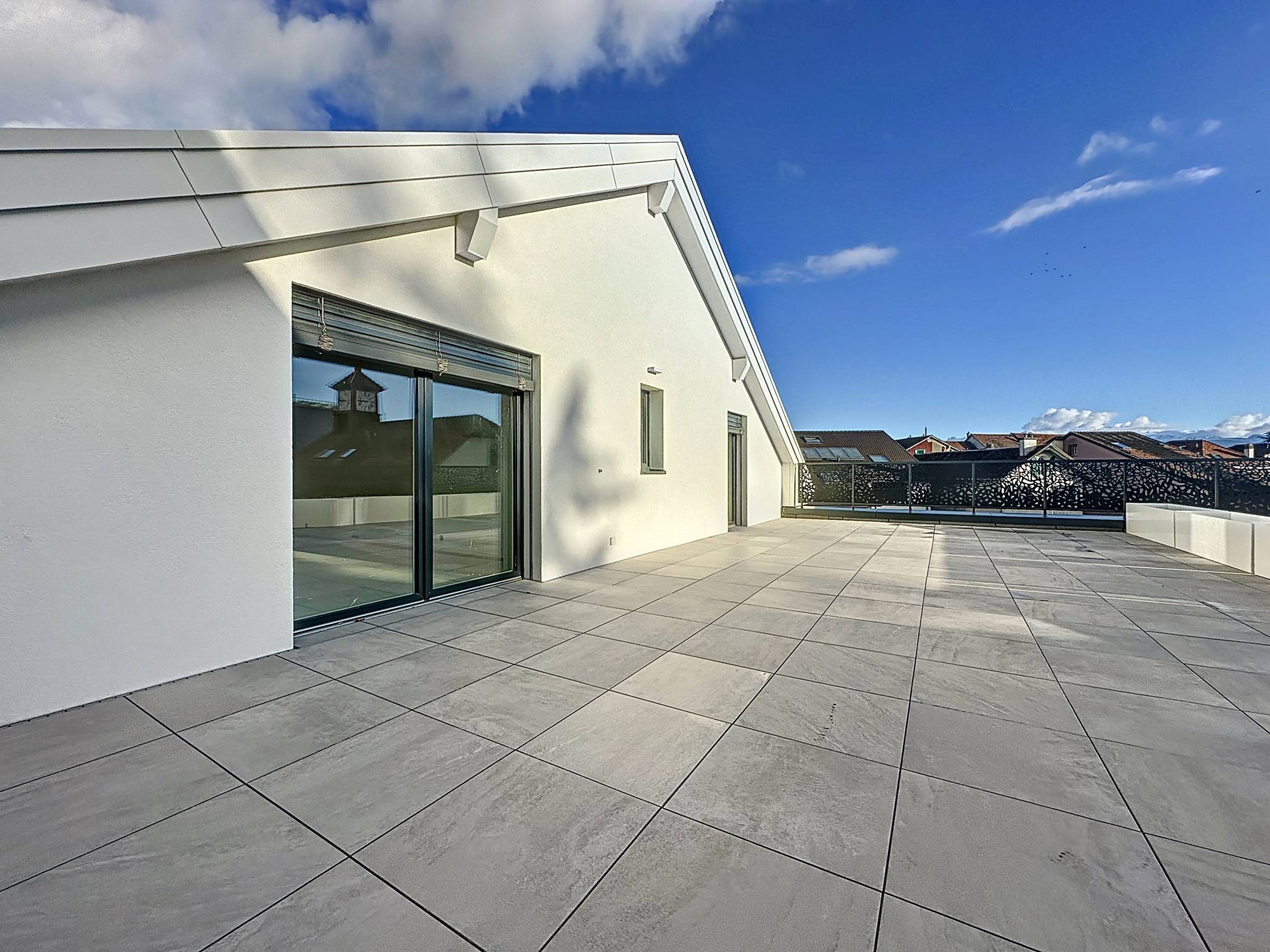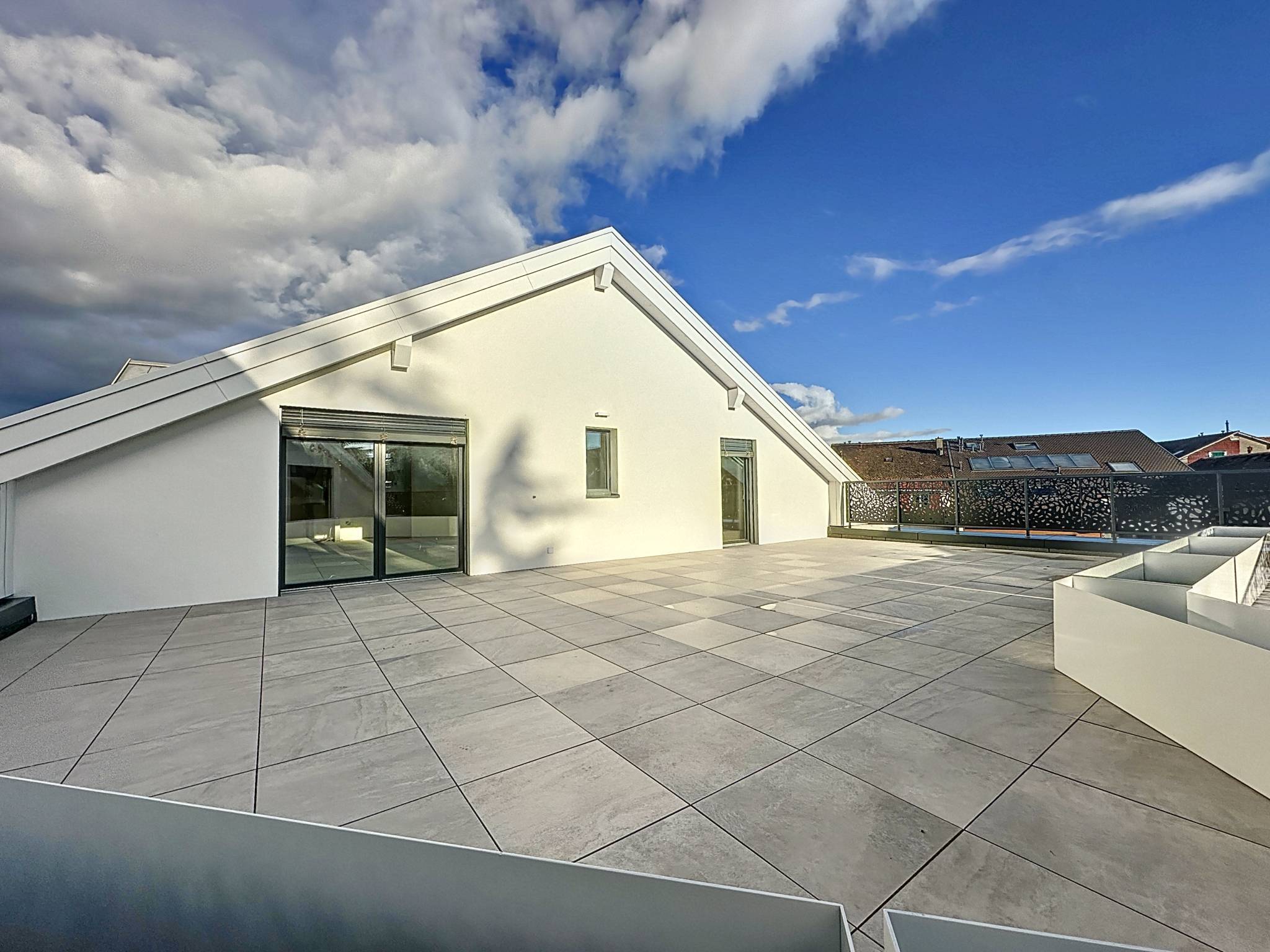 Il se compose d'un hall d'entrée muni d'armoires murales, d'une cuisine ouverte sur le lumineux séjour avec accès direct au rooftop terrasse. Trois chambres à coucher dont une avec salle de bains/WC attenante et accès à la terrasse, une salle de douches/WC avec possibilité d'installer une colonne de lavage et WC visiteurs.