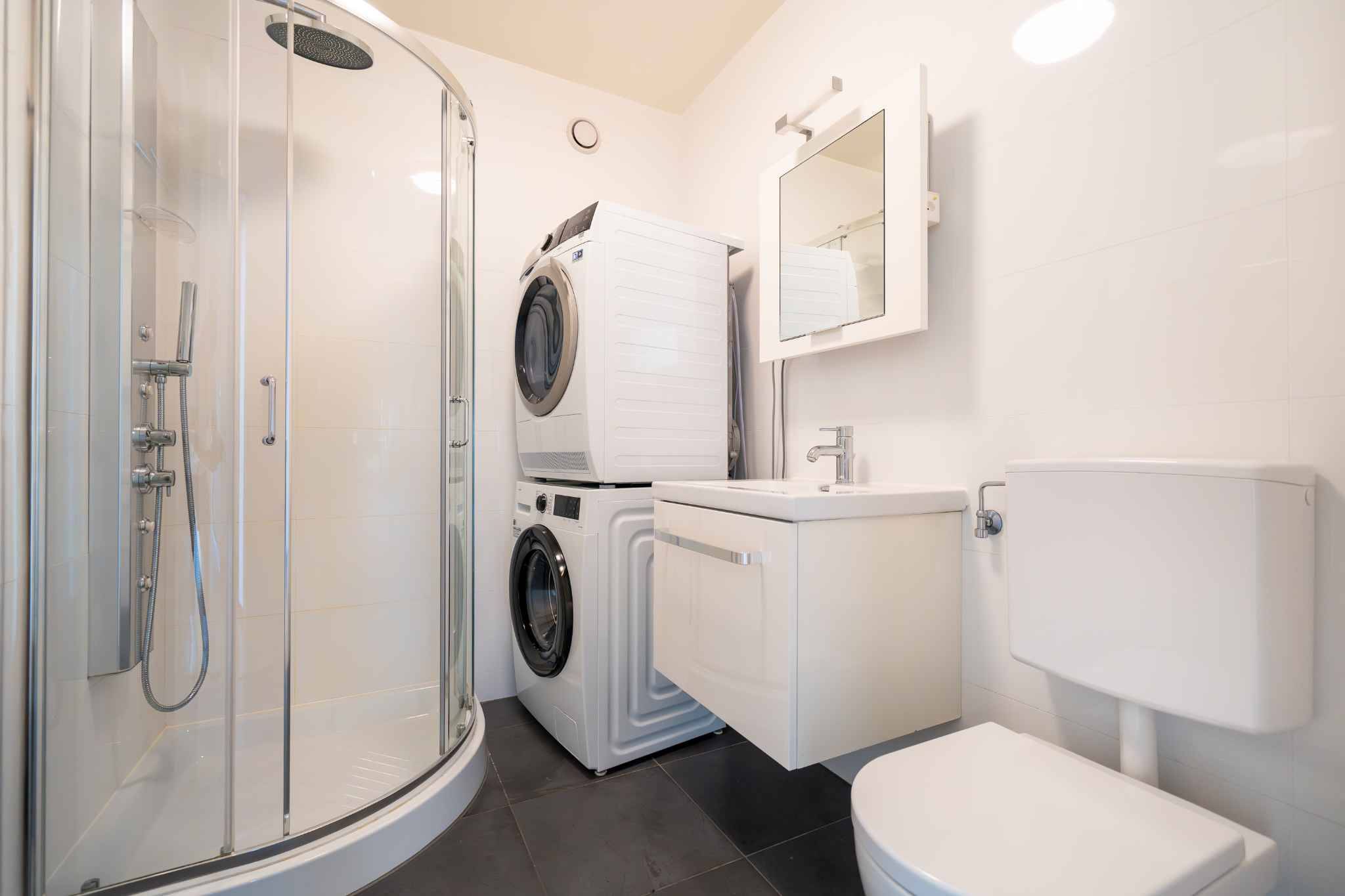 1 salle de douche avec colonne de lave-linge / sèche-linge