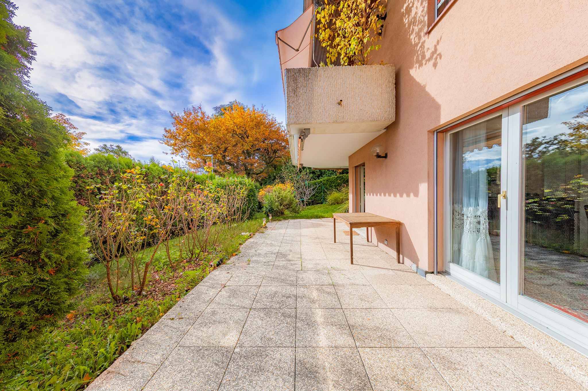 L'espace de vie se compose d'un vaste séjour lumineux et d'une salle à manger ouvrant sur un balcon. La cuisine, indépendante et fonctionnelle, donne accès au jardin privatif.