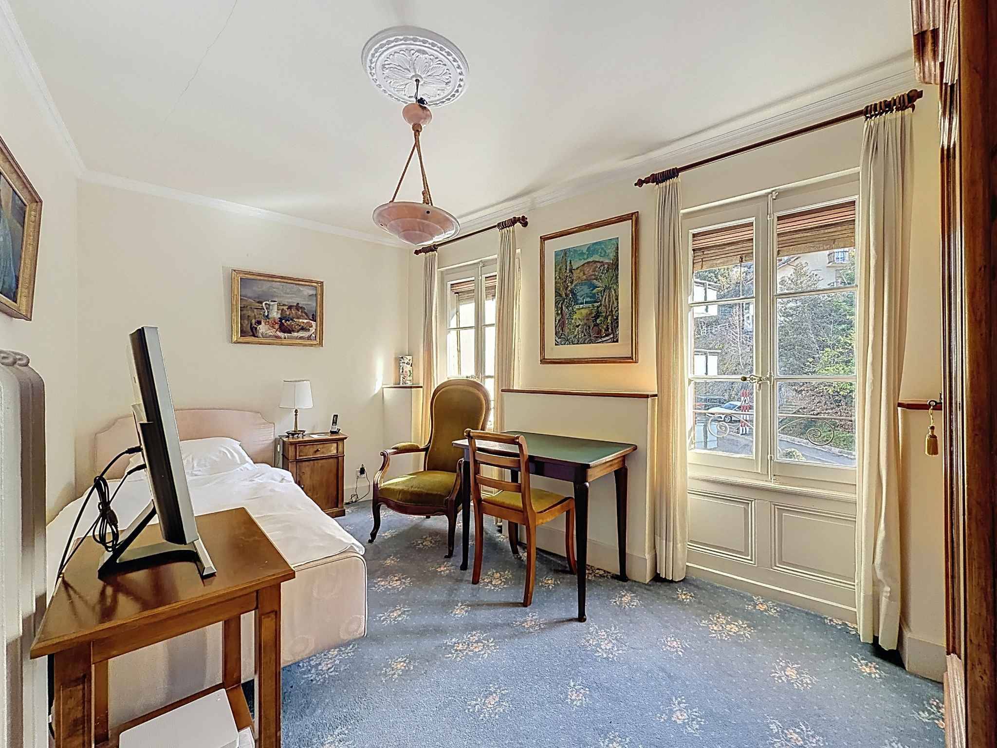 Depuis les étages, la vue s’ouvre avec élégance sur le lac et un panorama apaisant et inspirant au fil des saisons. Cette maison de village incarne un art de vivre rare, où le cachet d’antan est resté intact, dans un cadre privilégié dominant le paysage lémanique.