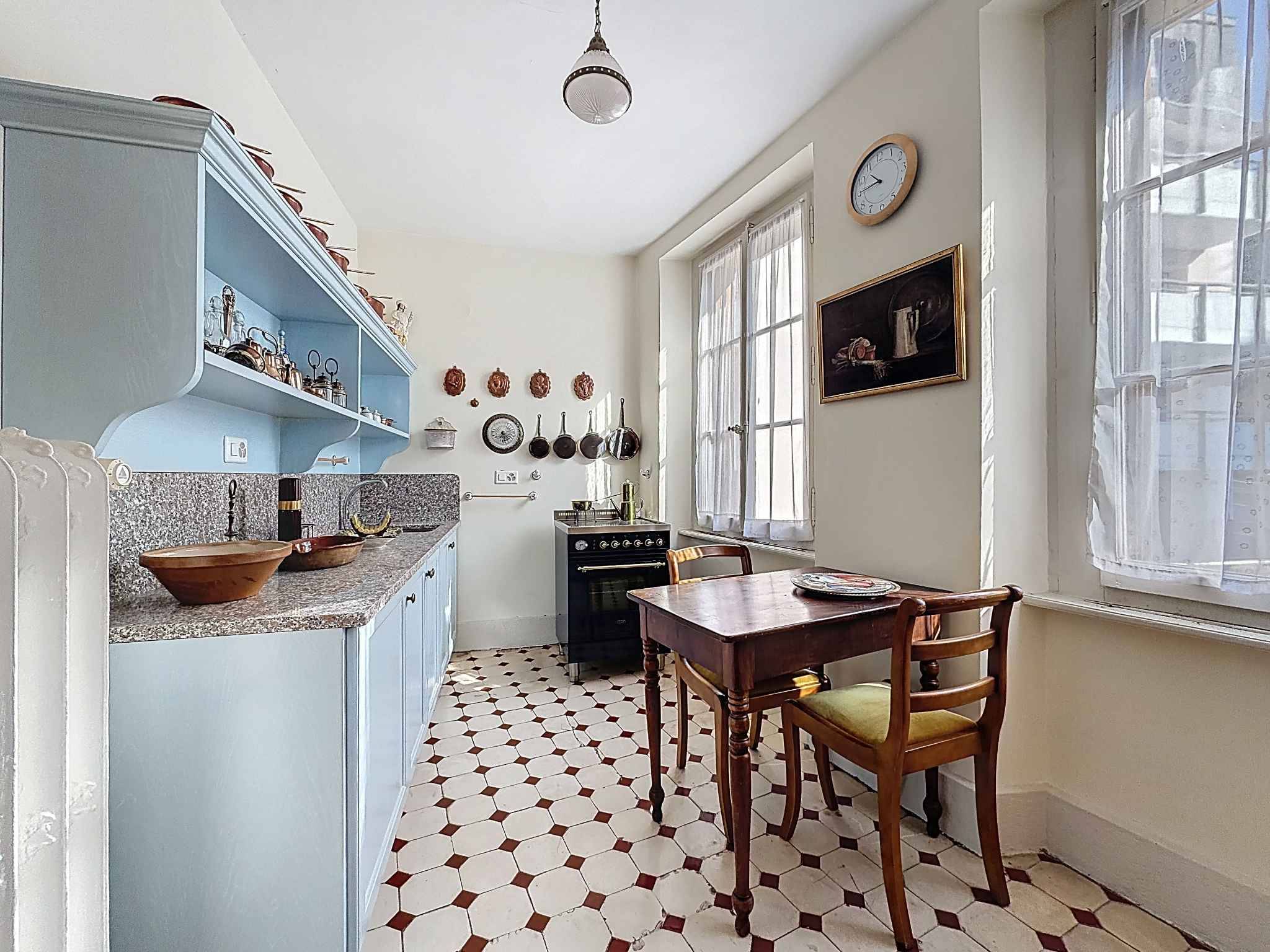 Répartie sur trois niveaux, elle dévoile de beaux volumes lumineux où le charme de l’ancien s’exprime pleinement et profite d'une belle rénovation et d'un entretien de premier ordre. Les carrelages et les parquets d’origine racontent l’histoire des lieux et participent à cette ambiance unique, faite de noblesse et de simplicité.