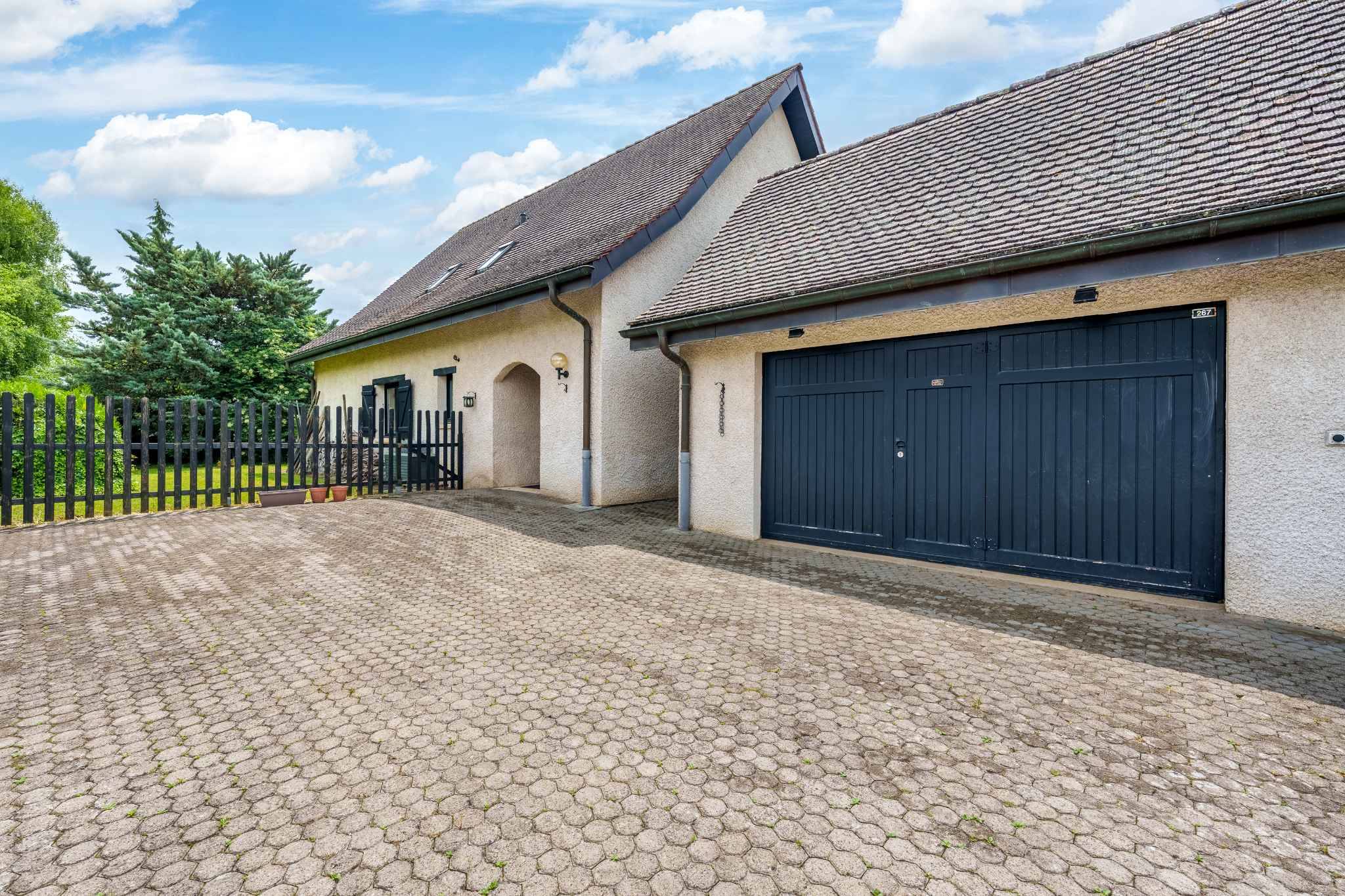 Garage et plusieurs places de parc extérieures dans la cour.