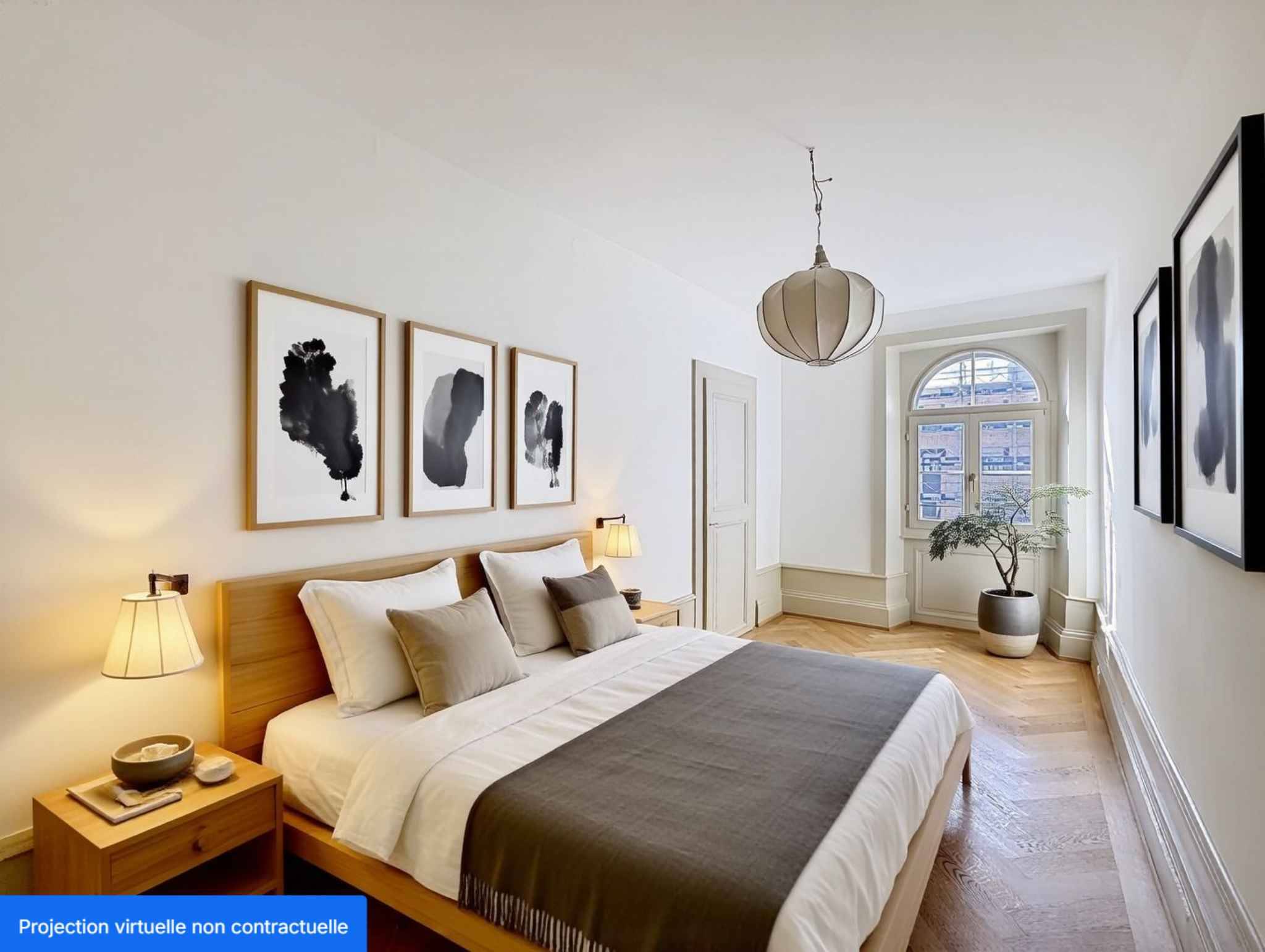 Les amoureux de « l’Ancien » avec les moulures au plafond, les cheminées d’époque, les parquets en bois massif, la hauteur sous plafond des demeures d’avant, seront totalement séduits par cet appartement neuf, témoignant de l’identité originelle du bâtiment tout en bénéficiant du confort d’aujourd’hui.