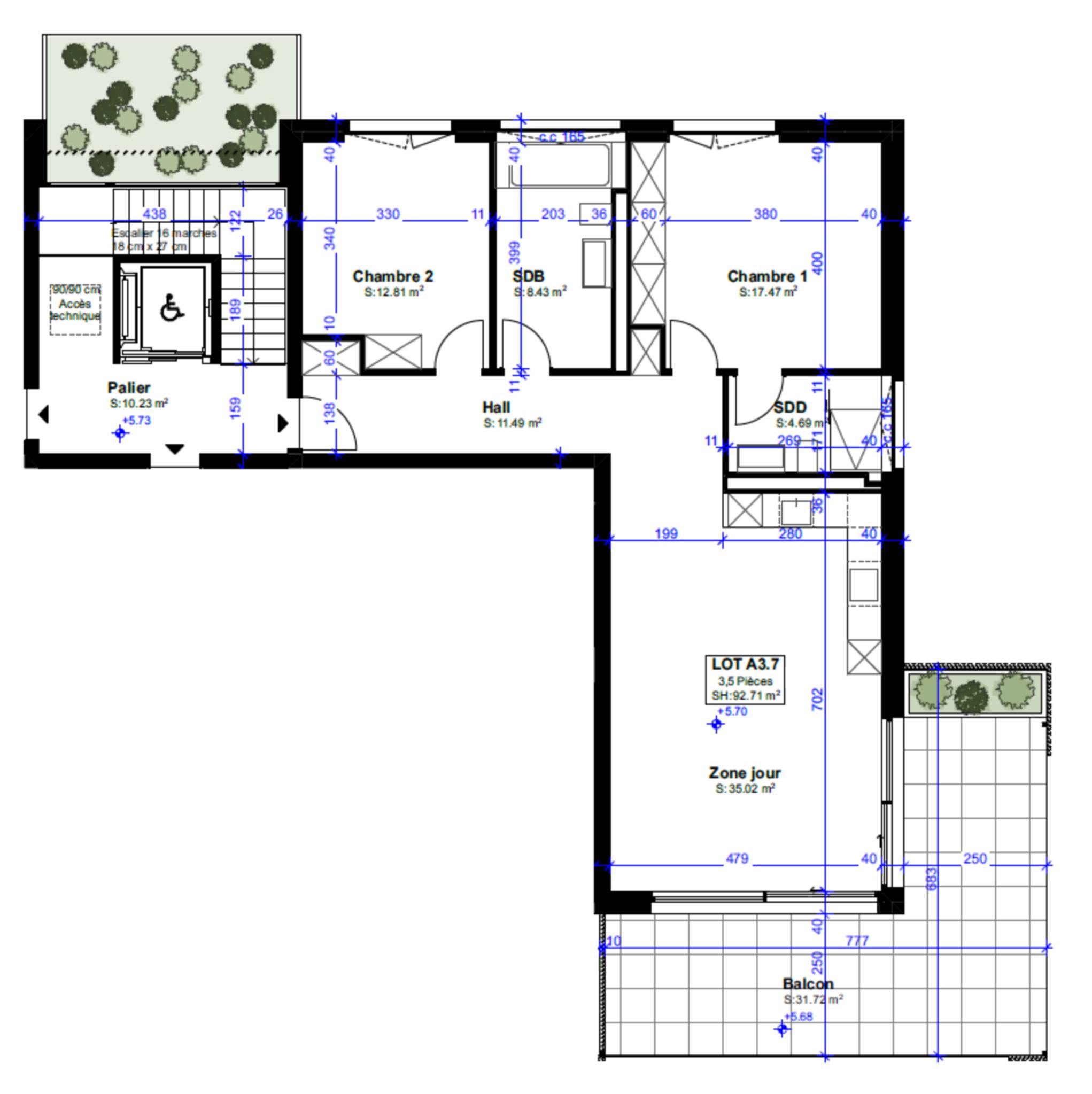 Cet appartement traversant de 3.5 pièces au 2ème et dernier étage, orienté sud-est, propose 92 m² habitables, prolongés par une superbe terrasse de 32 m².
