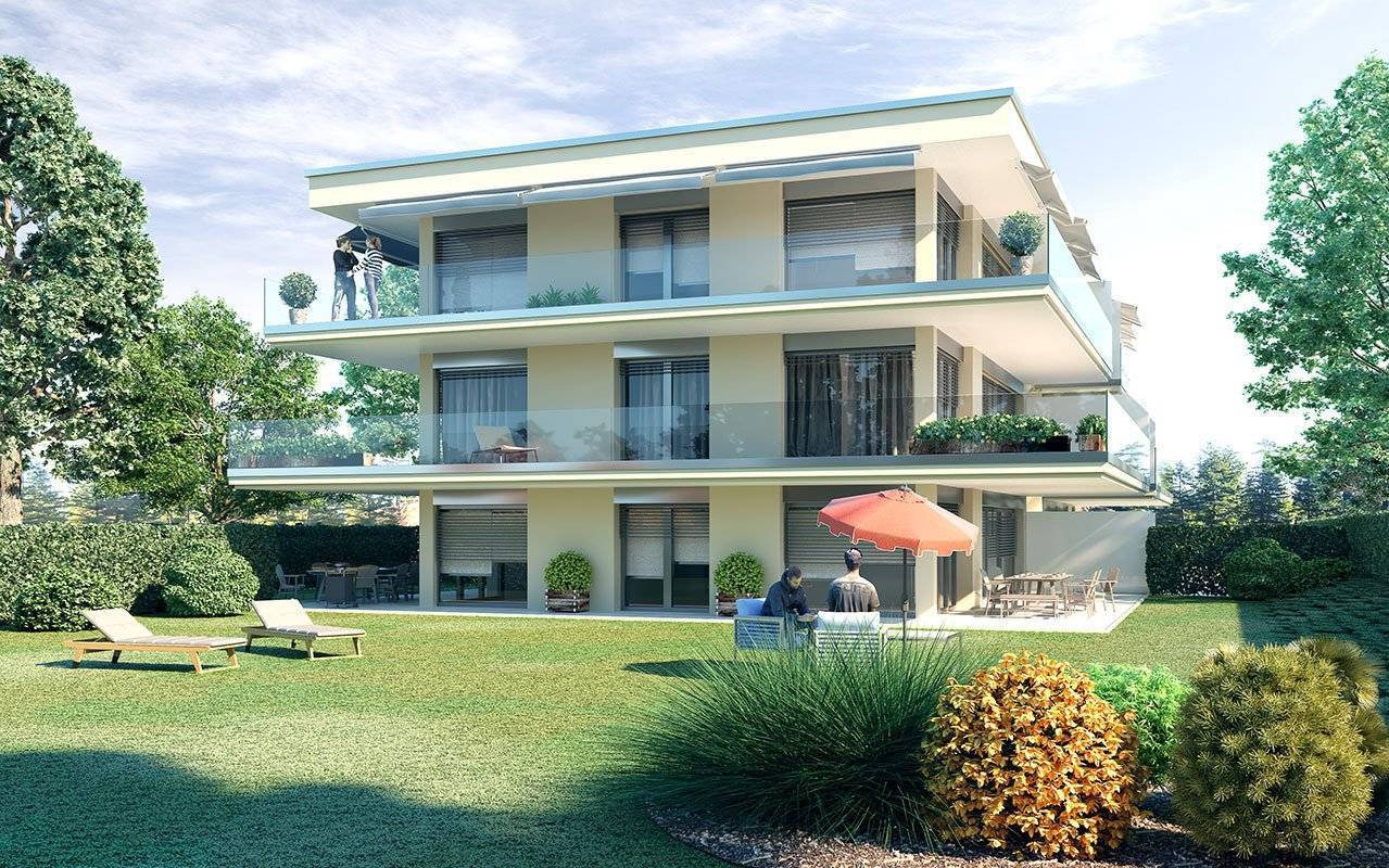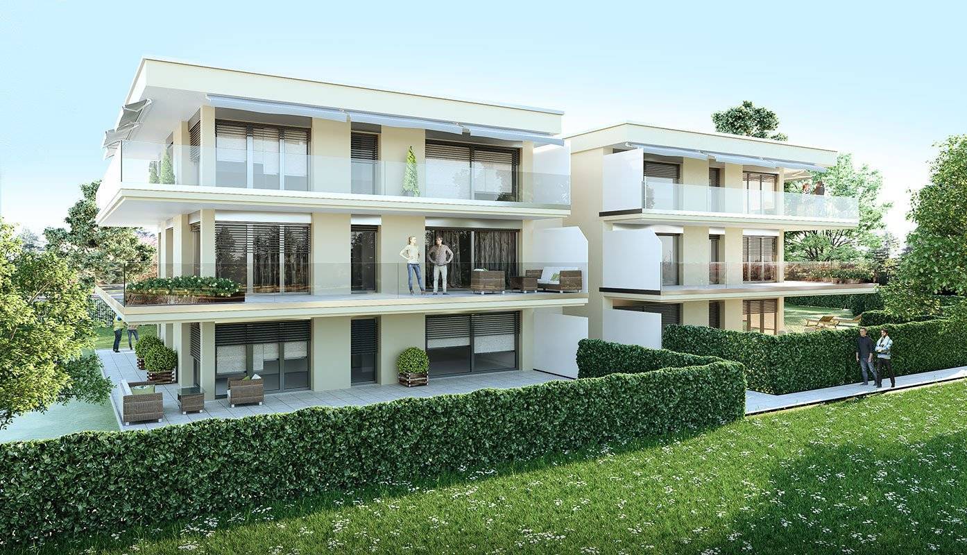 Situé à Vandoeuvres, 1 immeuble de 2 bâtiments en construction label « HPE » - 6 appartements dans un cadre verdoyant, un chemin à l'abri de toutes nuisances, à proximité du Golf Club de Genève, du village de Cologny et du centre commercial de Vésenaz.