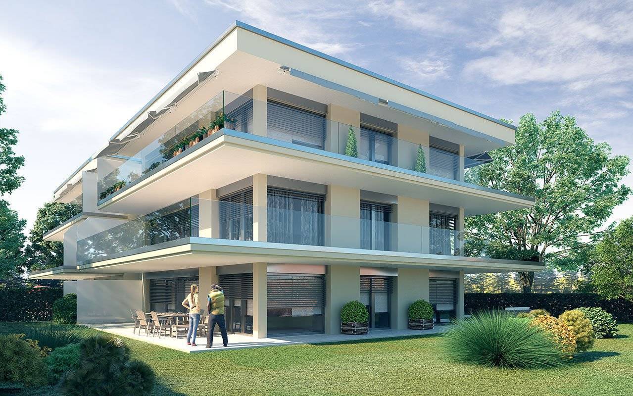 Situé à Vandoeuvres, 1 immeuble de 2 bâtiments en construction label « HPE » - 6 appartements dans un cadre verdoyant, un chemin à l'abri de toutes nuisances, à proximité du Golf Club de Genève, du village de Cologny et du centre commercial de Vésenaz.