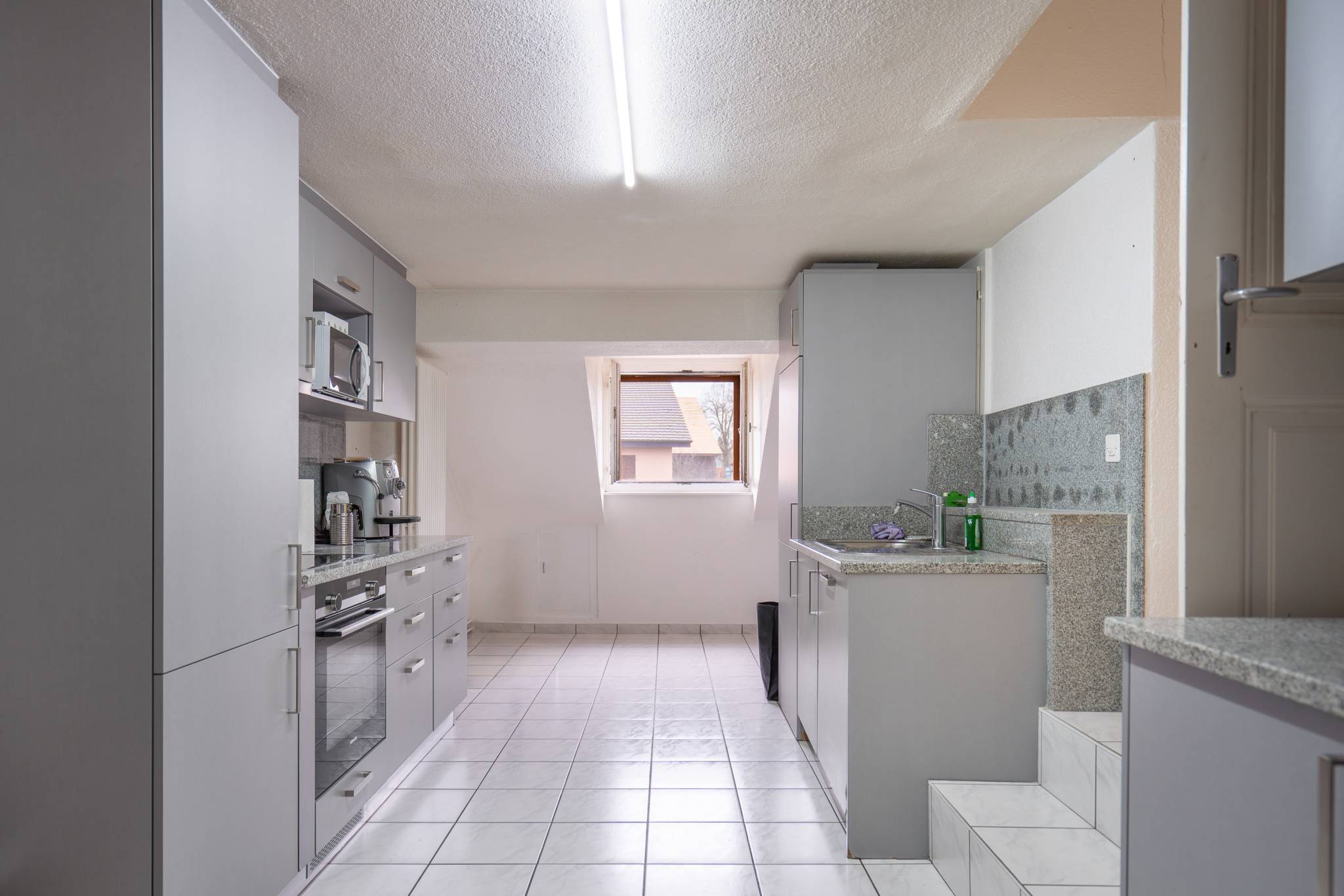 Rez de chaussée : 1 appartement de 3.5 pièces 1 local bureauGrange