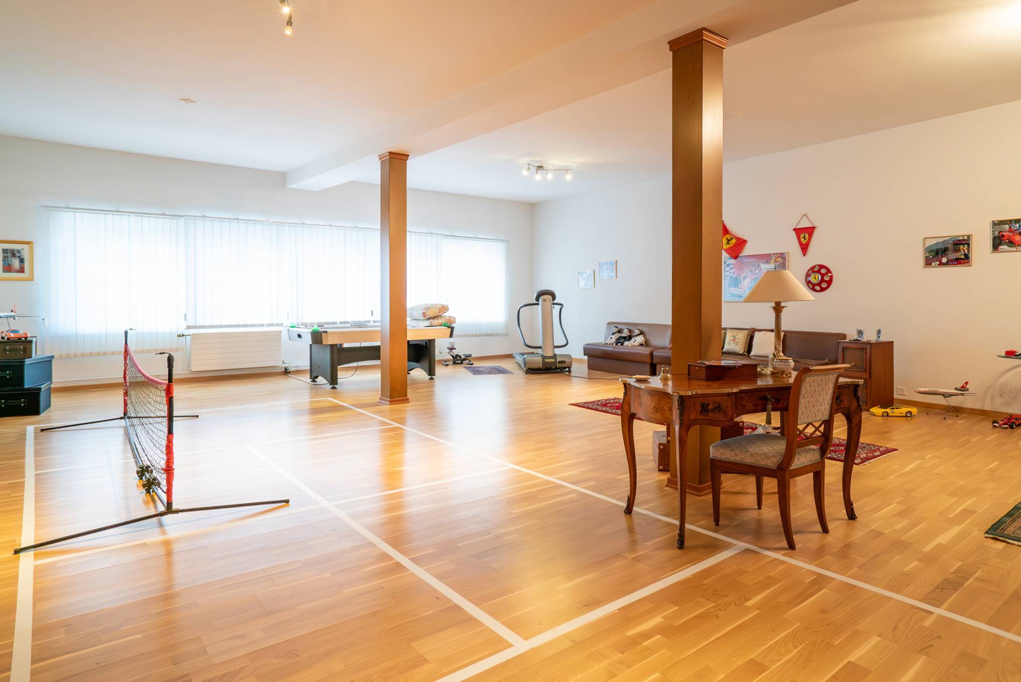 Le dernier étage offre une grande salle de jeux, un salon, une pièce de détente généreuse, une buanderie et une pièce supplémentaire.