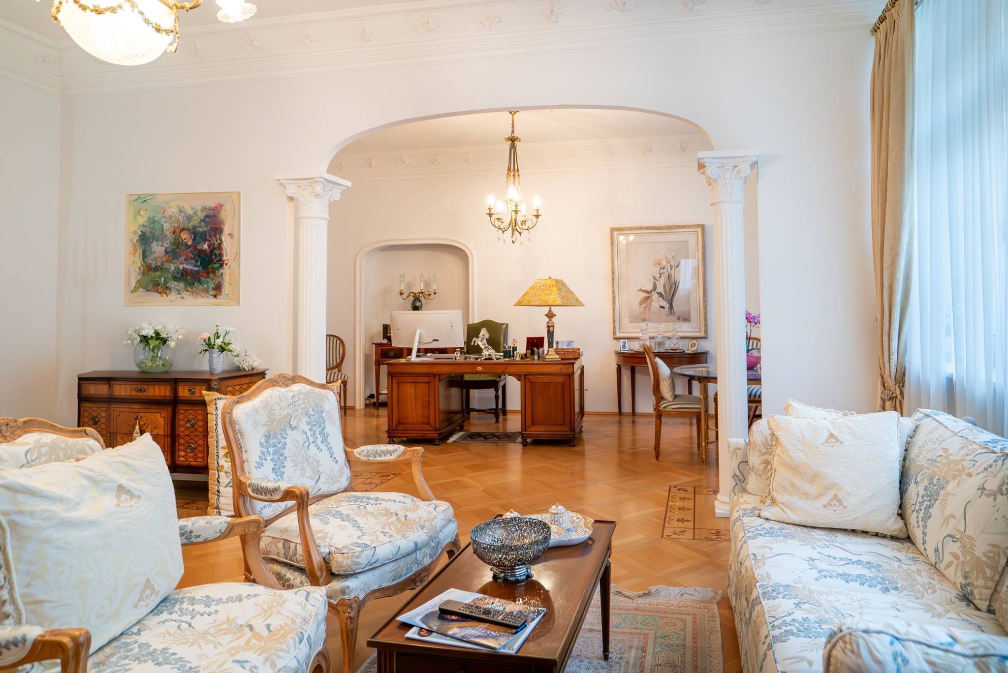 Composé d’un appartement de 13 pièces, et de deux surfaces d''un total de 216 m2 actuellement louées, cet édifice offre un potentiel de transformation et d'utilisation important. L’ensemble est composé de larges espaces de vies qui bénéficient d’une grande qualité des matériaux employées.