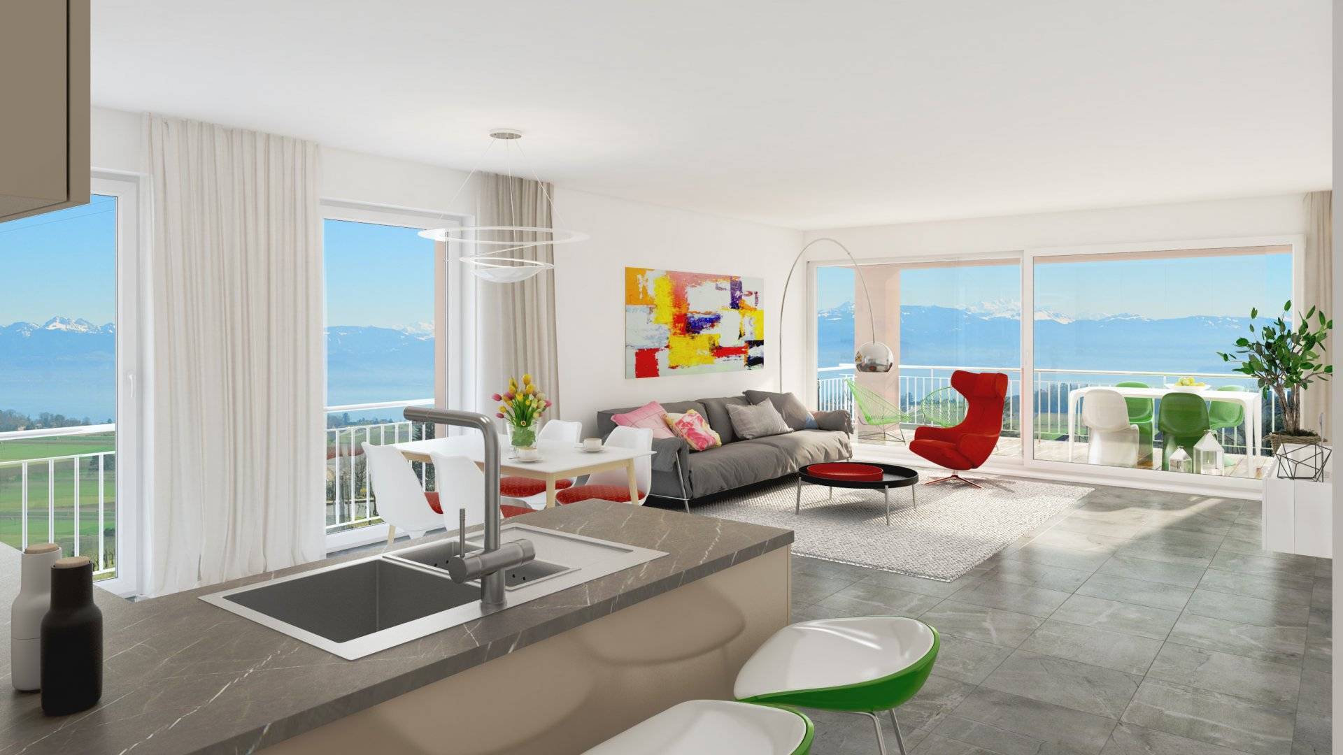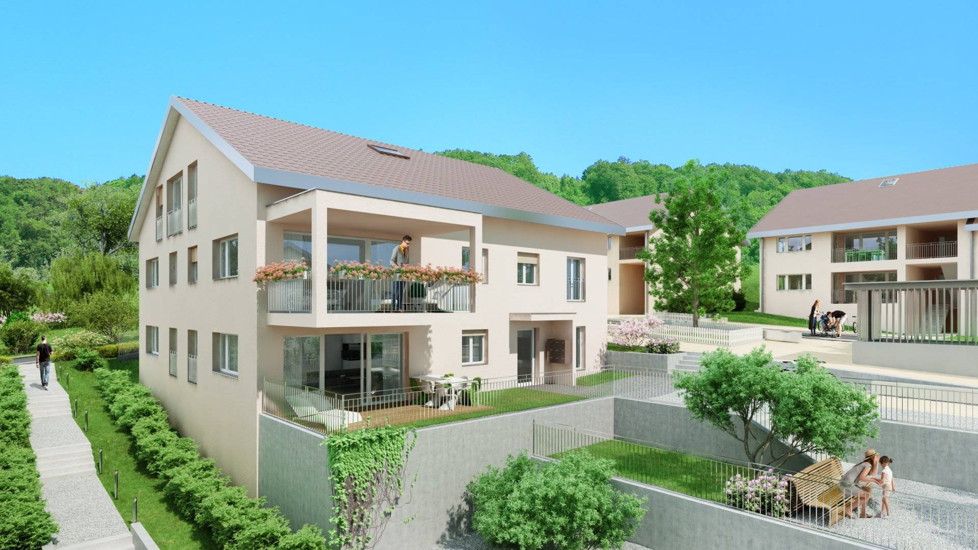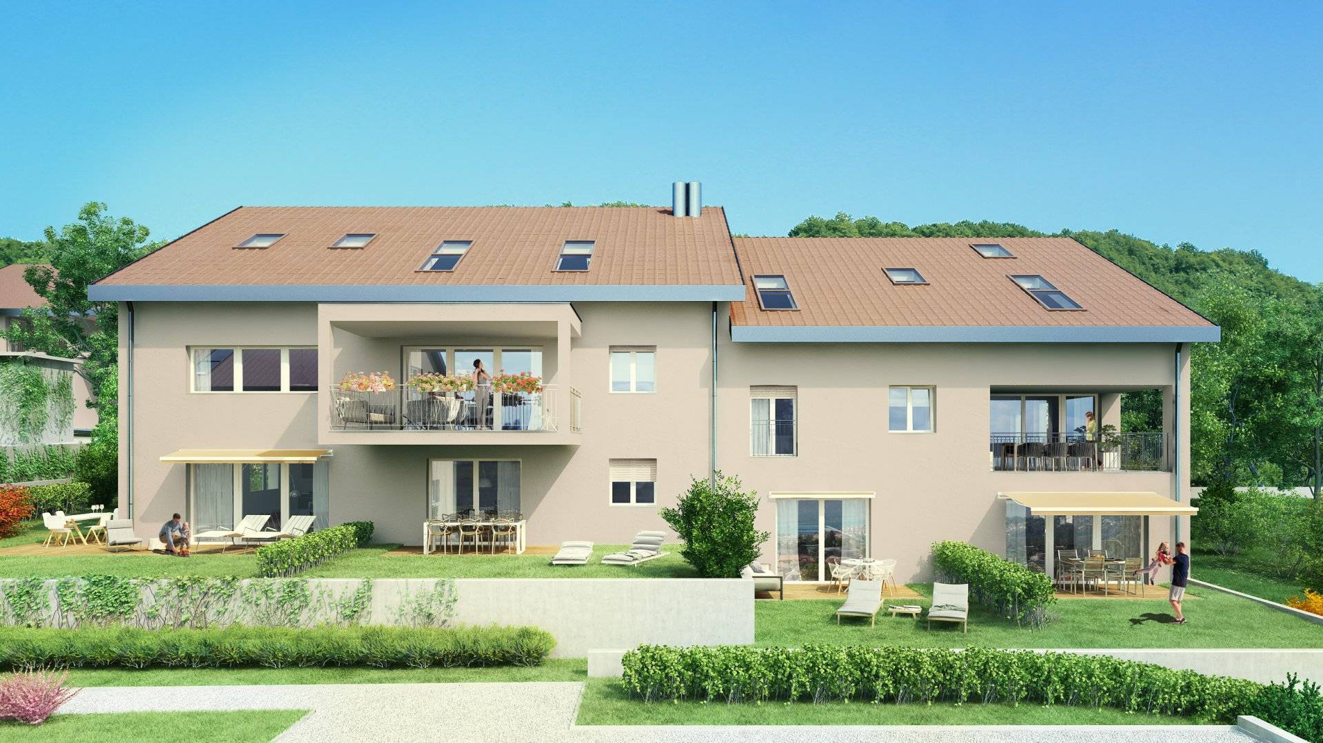 Le programme prévoit une distribution allant du studio au 4.5 pièces avec pour la plupart des lots une splendide vue sur le lac et les Alpes et un ensoleillement optimal.