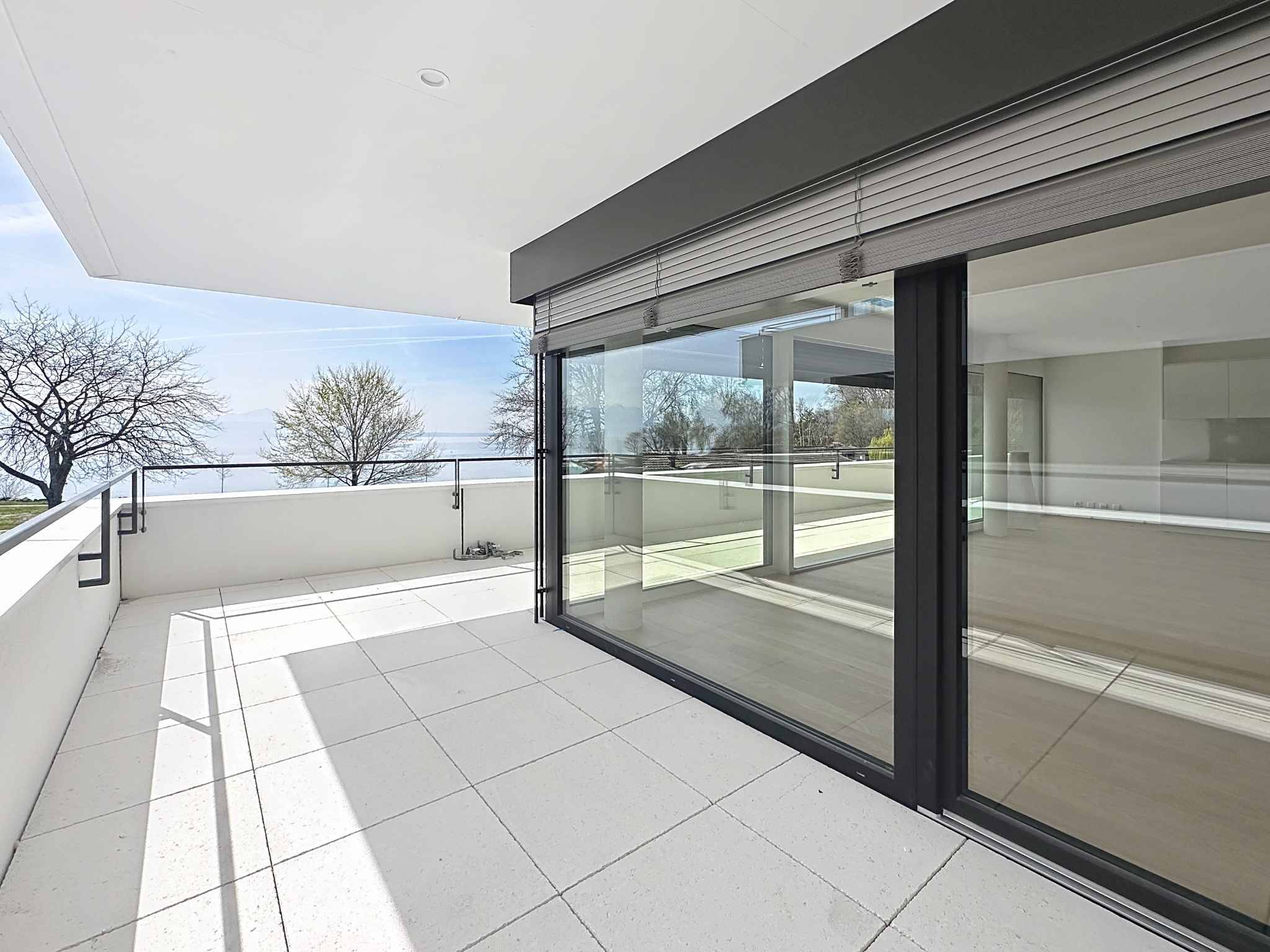 Hall d'entrée avec armoire murale, cuisine ouverte sur le séjour de 46m2 avec accès au 1er balcon de 19m2 bénéficiant d'une vue 180° sur le lac. Une salle de douches avec WC, trois chambres à coucher dont une parentale avec dressing et salle de bains privative comprenant baignoire, lavabo double, WC et raccordement pour la colonne de lavage. Les 3 chambres à coucher disposent d'un accès au second balcon de 11m2. Une cave complète ce bien.